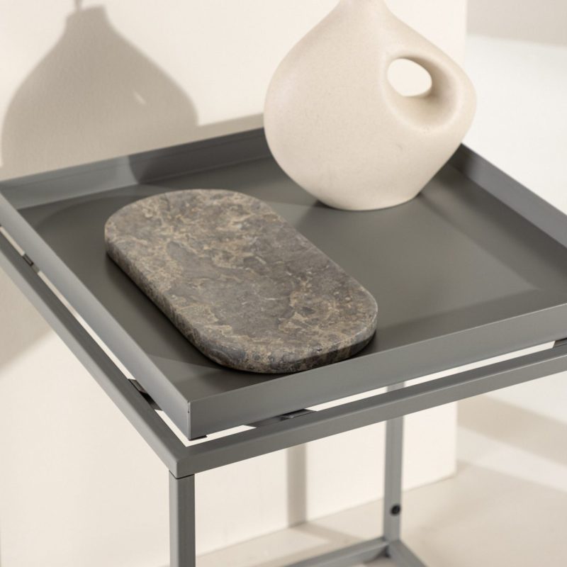 Tutvustame Porto Alegre kõrvalauda tumehallis – täiuslik segu modernsest elegantsist ja funktsionaalsusest. Valmistatud jätkusuutlikust hallist terasest, iseloomustab seda kõrvalauda trendikas minimalistlik disain nutikate väikeste servadega lauaplaadil, mis lisavad ainulaadsust.