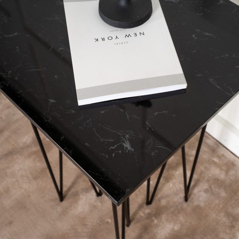 Tõstke oma eluruum uuele tasemele Stone ruudu kujulise kõrvaltabeliga 40*40, mis on valmistatud tehislikust kivist ja mustast terasest. See moodne ja trendikas laud Stone sarjast on unikaalse mustriga lauaplaadiga, millel on dekoratiivne must metallist alus, lisades igasse tuppa elegantsust. Kasutage seda öökapina luksusliku tunde tekitamiseks või stiilse lisandusena oma elutoas. 40x40cm mõõtmed muudavad selle mitmekülgseks erinevatele ruumidele.