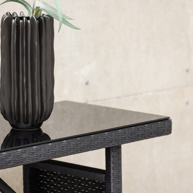 Padova pole lihtsalt kõrvalaud; see on keerukas aktsenttükk, mis rikastab teie õueala atmosfääri. Ajatu must rottang koos tugeva alumiiniumraamiga tagab nii stiili kui ka stabiilsuse. Olgu see asetatud tugitooli kõrvale või õuemööbli juurde, Padova loob šiki õueoaasi.