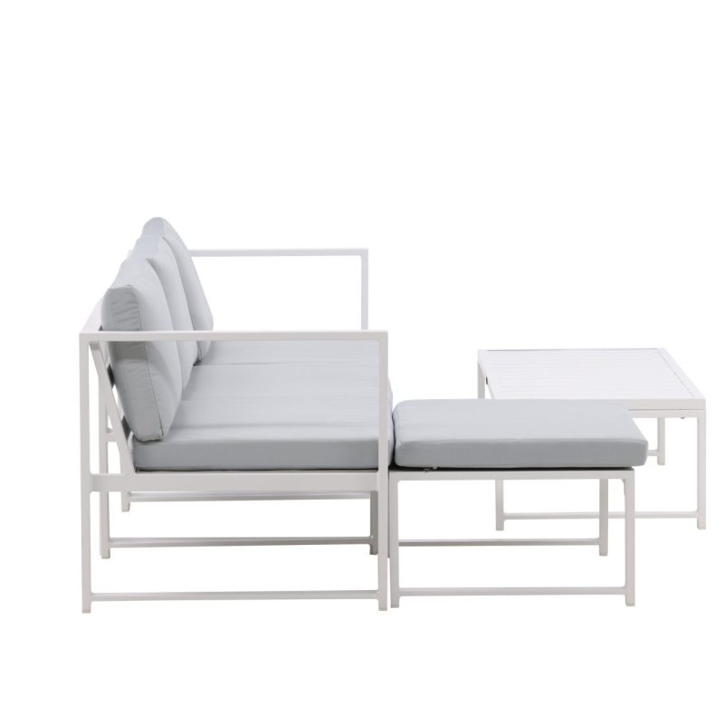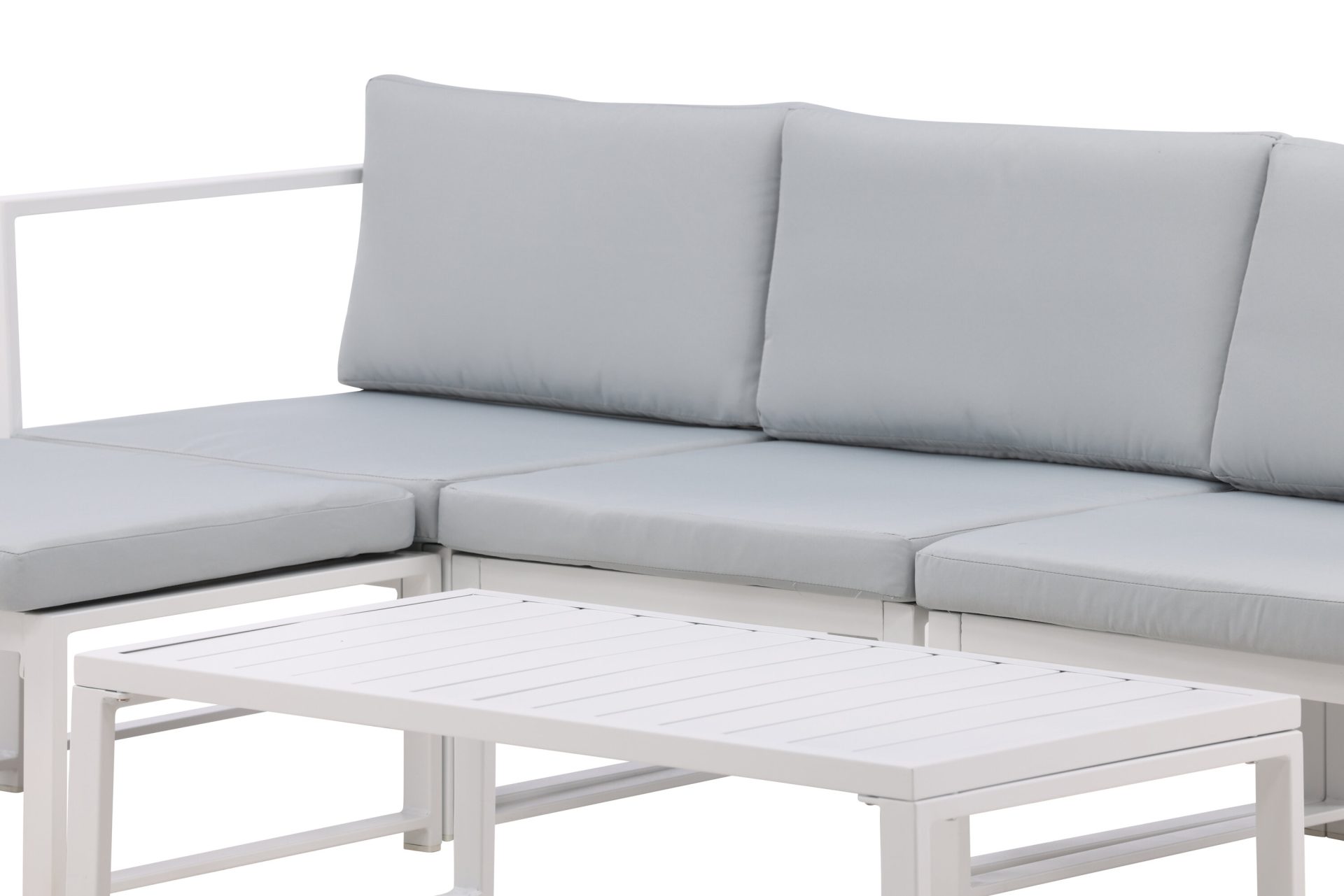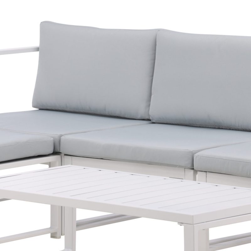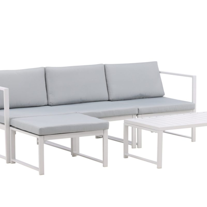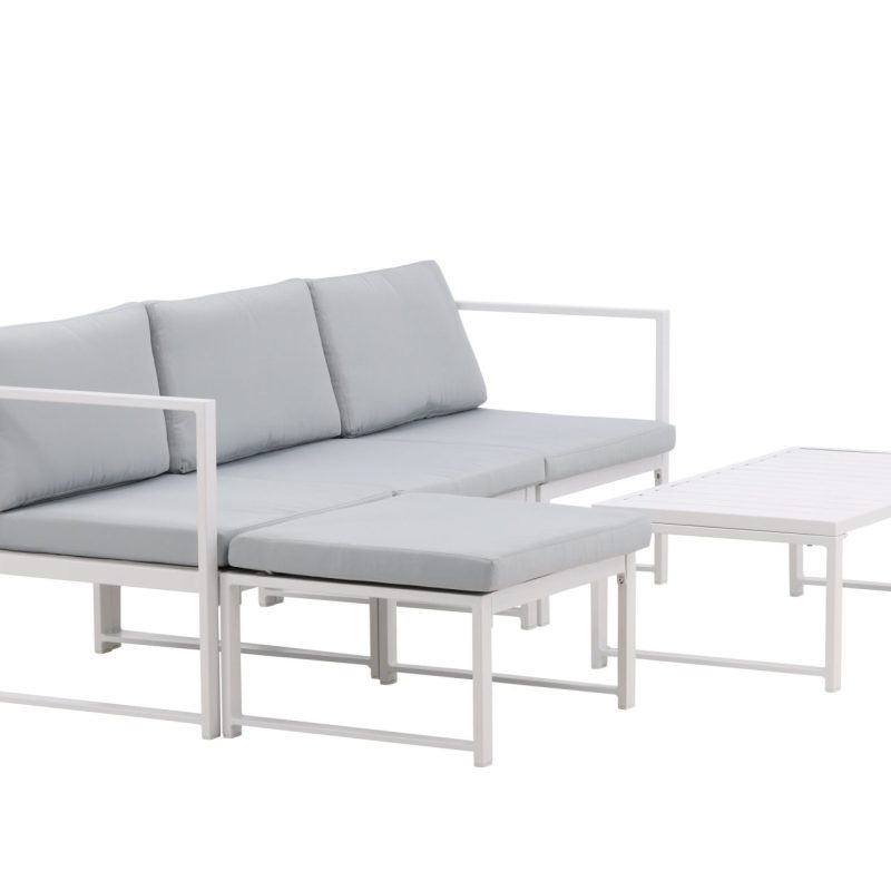Tutvustame Salvadori diivanikomplekti, stiilset ja mitmekülgset lisandit teie õuealale. See diivanigrupp on kujundatud silmapaistva disainiga meeldivas hallis toonis, valge pulbervärvitud metallist ja alumiiniumist konstruktsiooniga, mis muudab selle nii hoolduslihtsaks kui ka vastupidavaks välistingimustes kasutamiseks. Komplekti kuulub 2 nurka, 1 keskosa ja 1 ottoman, lisaks pehmed heledad hallid padjad lisamugavuseks. Modulaarne disain võimaldab kohandatavaid paigutusi, ideaalne oma oaasi loomiseks terrassil.