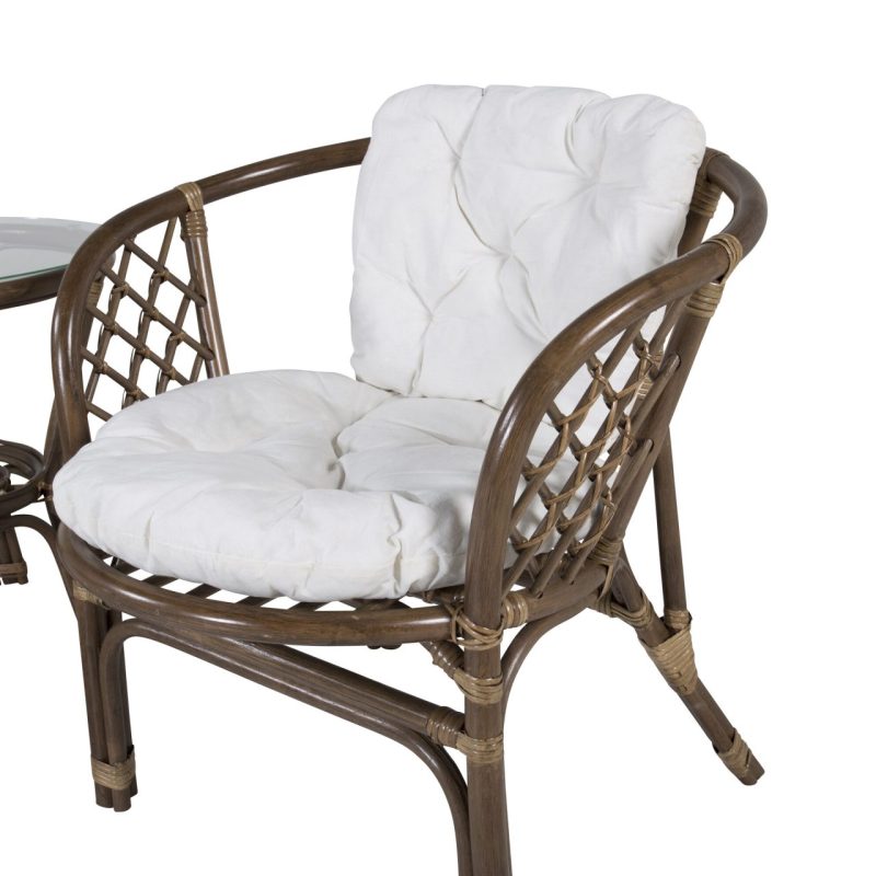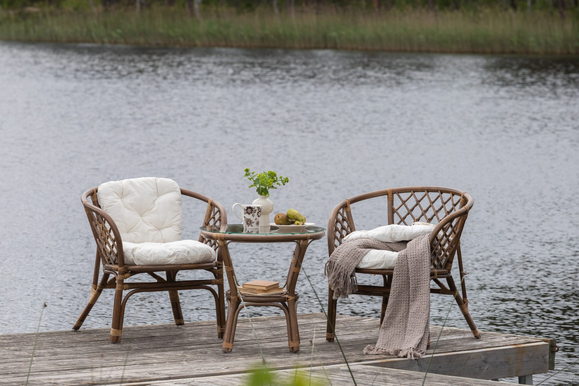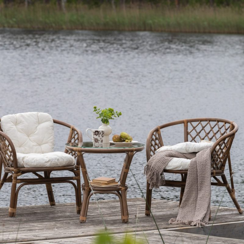 Loo võluv välikohvik koos Wera kohvikukomplektiga. See hubane kohvikukomplekt sisaldab kahte raamtooli valgete peitsitud patjadega ja ümmargust kohvilauda klaasist lauaplaadiga. Valmistatud tugevast ja vastupidavast looduslikust kuninganna rotangist, on see klassikaline komplekt ideaalne teie klaasitud terrassile või väikesele rõdule. Unikaalne laserdetailide töötlus ja erinevad varjundiga sidemed lisavad igale esemele stiilset puudutust. Muutke oma ruumi selle ajatu kohvikukomplektiga, mis kindlasti püüab iga silma.