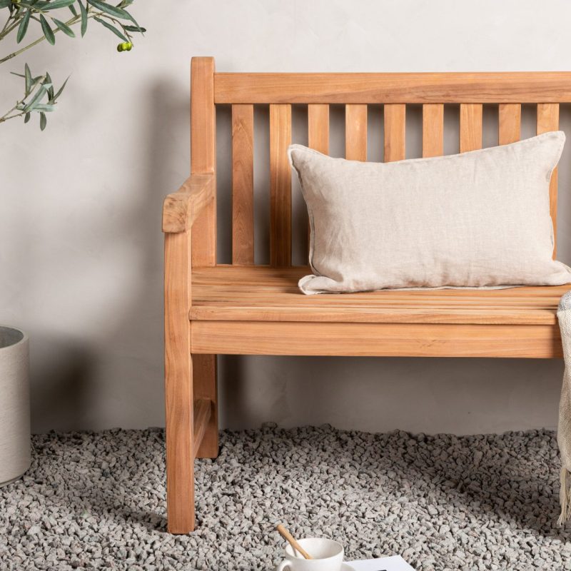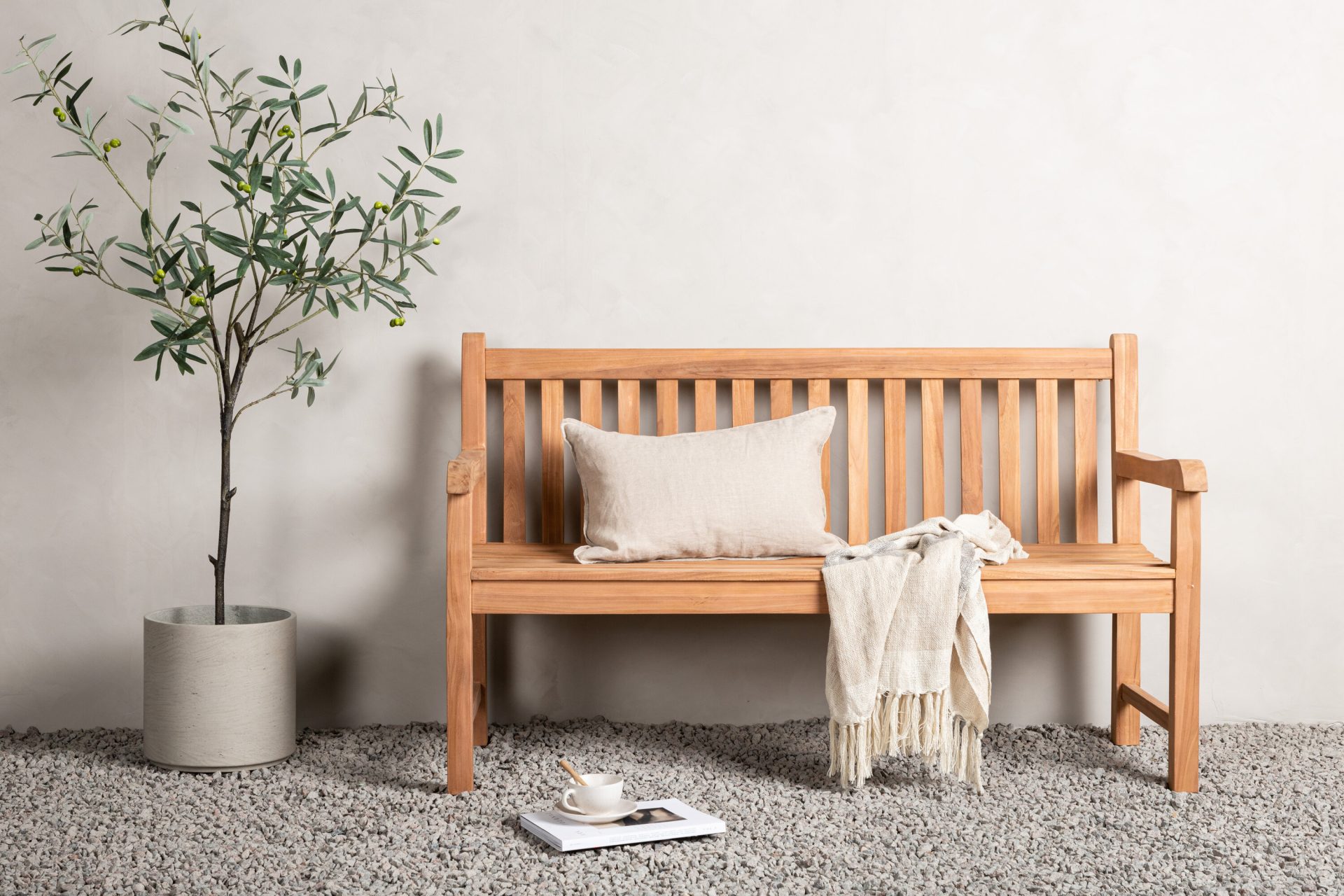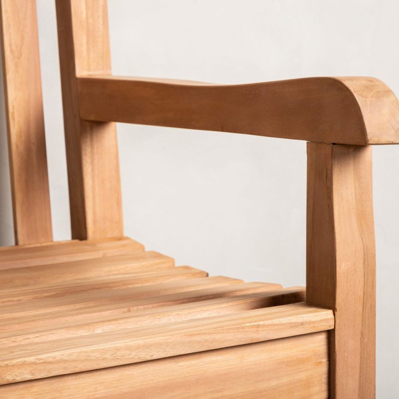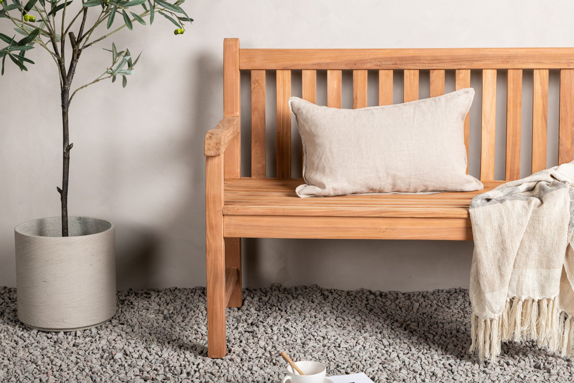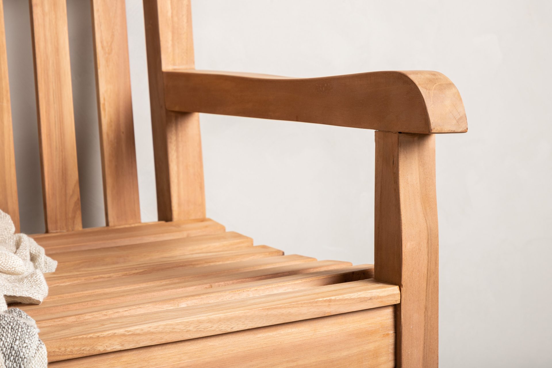 Hoolikalt sertifitseeritud tiigipuust valmistatud pink on nii vastupidav kui ka keskkonnasõbralik. Oma loomuliku värvuse ja kutsuva tundega on see klassikaline valik igasse õuealasse.