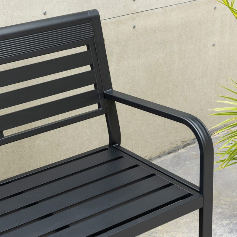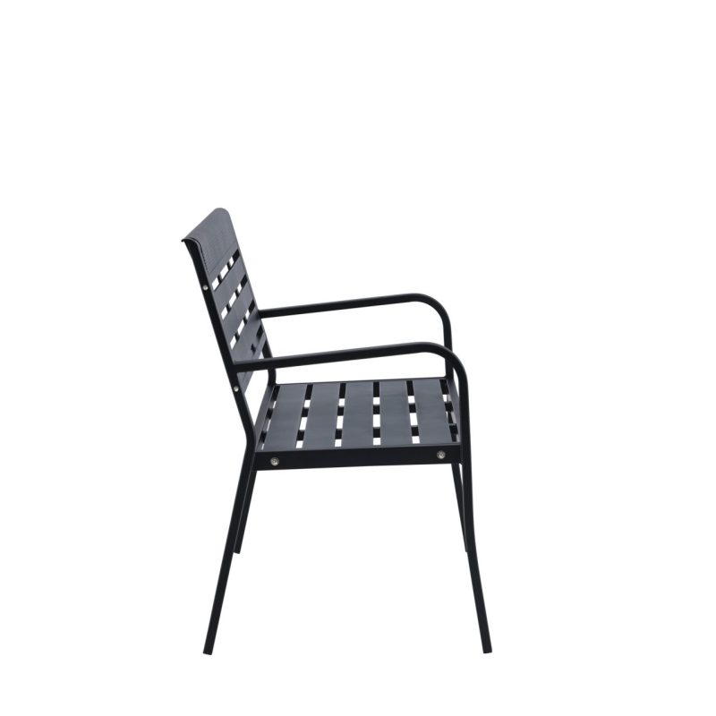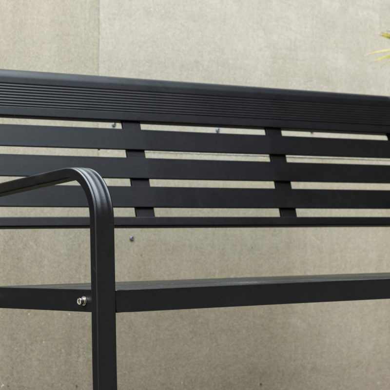Tutvustame musta värvi Elvas pinki, mis on täiuslik lisand teie aeda või terrassile. See pink on valmistatud vastupidavast ja kergesti hooldatavast alumiiniumist, mis kiirgab elegantsi oma stiilse musta värvi tõttu. Elvas pinkil on seljatugi ja kaks mugavat käetuge, pakkudes teile mõnusat kohta, kus välitingimustes lõõgastuda.