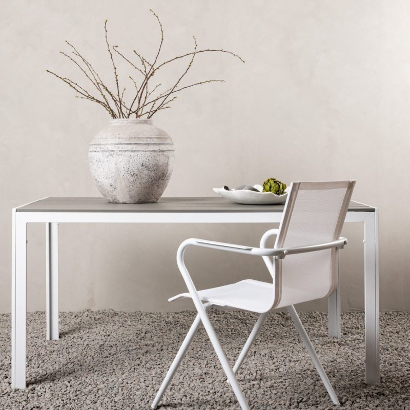 Tutvustame BreakTable150*90-White/Grey – stiilne välistingimustes söögilaud, mis sobib suurepäraselt teie patioks. Laua tunnuseks on hall vineerist pealispind ja valged alumiiniumist jalad, mis loovad modernse ja kutsuva ilme. Selle neutraalsed värvid sobivad hästi igasse keskkonda, muutes selle teie koju mitmekülgseks lisanduseks.