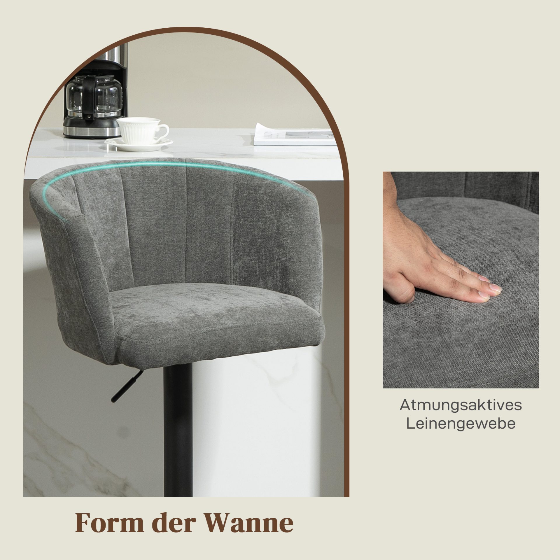 Pehme vahtpolster koos hingava linasarnase kangaga tagab pikaajalise istumismugavuse