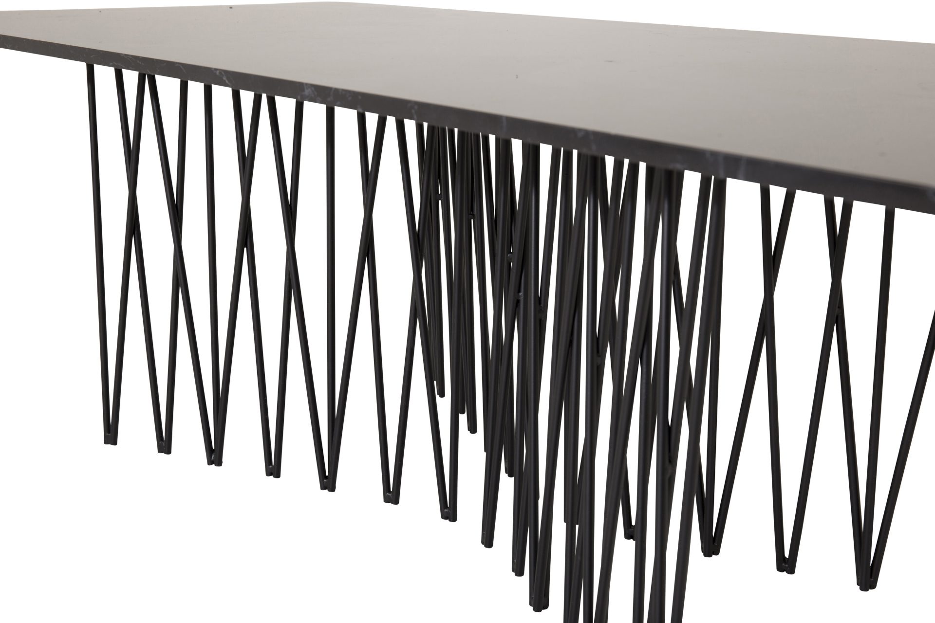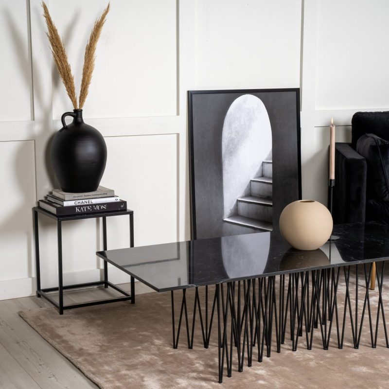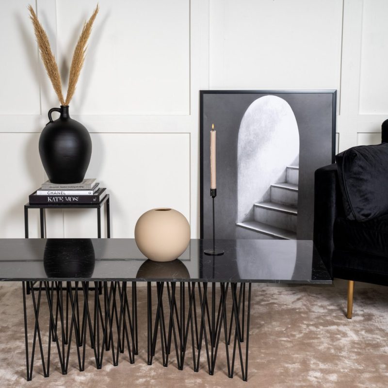 Tõstke oma elutuba esile Stone diivanilauaga. See trendikas laud sisaldab luksuslikku musta mustriga kunstkivi lauaplaati ja ainulaadset musta metallist alusraami. Selle stiilne disain täiendab vaevata igat sisekujundust, muutes selle ajatuks tükiks. Lisage oma ruumi rafineeritud puudutus selle Furniture Fashion esemega.
