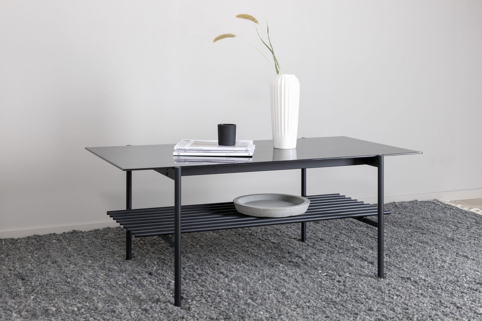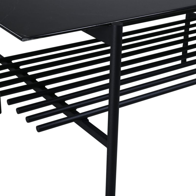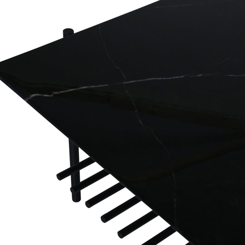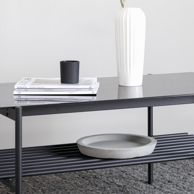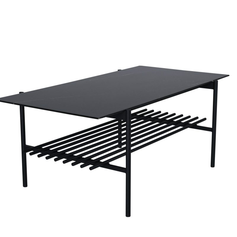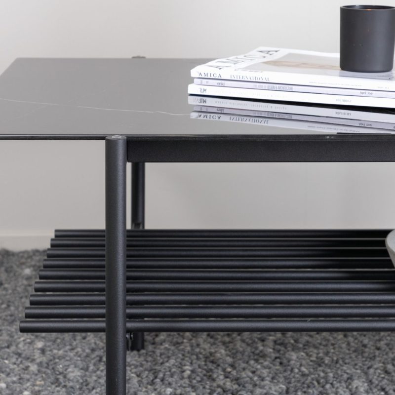 Tõsta oma elutuba Von Staf diivanilauaga. See ristkülikukujuline kohvilaud on varustatud stiilse musta marmorklaasist lauaplaadi ja stiilse musta metallraamiga, õhkudes modernset ja tööstuslikku võlu. Lauas on lisaruumi pakkuv sooniline riiul. Mõõtmetega 60x120x48 cm on see laud nii praktiline kui pilkupüüdev.