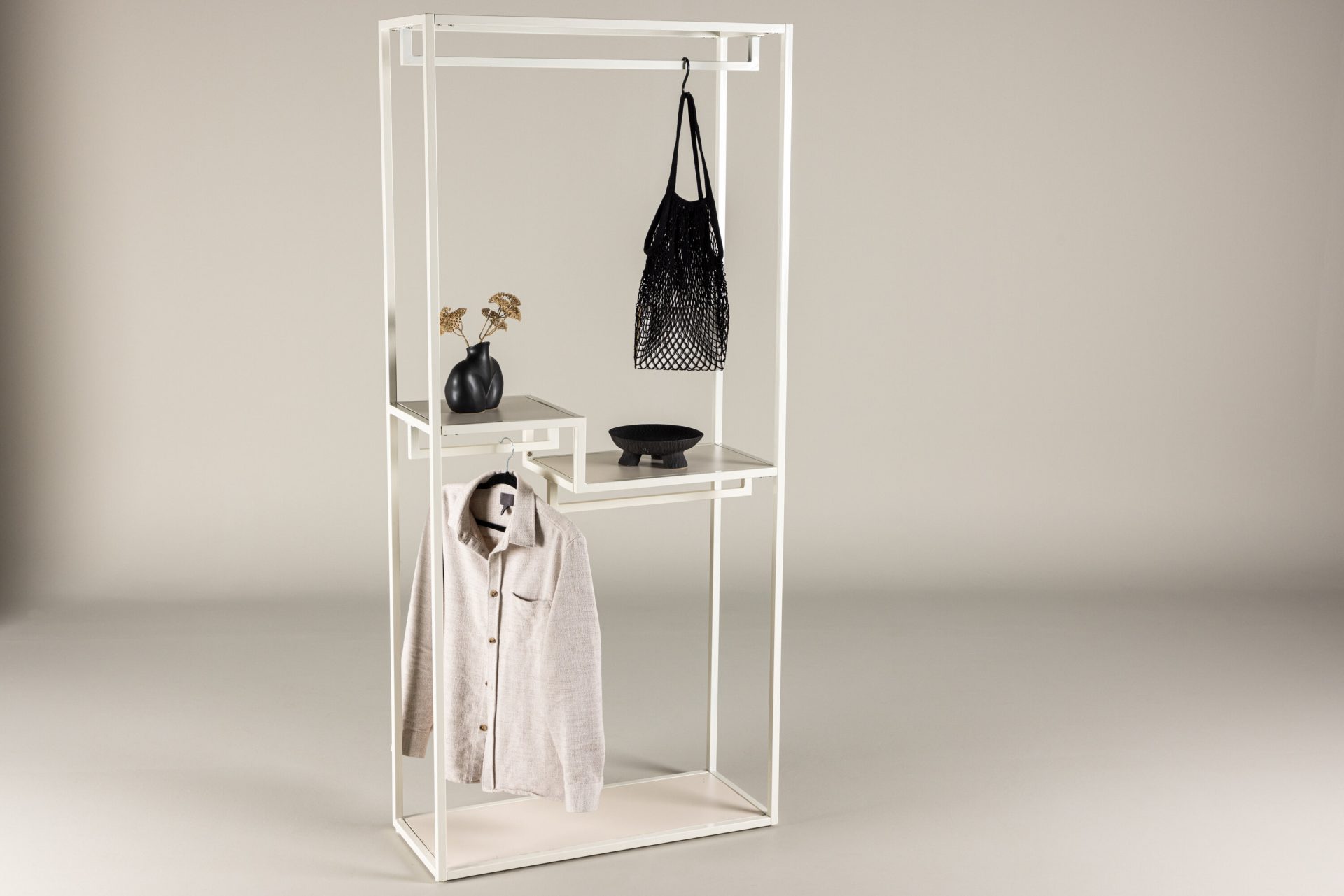 Tõstke oma kodu esile meie pehme beezh varjundiga Staal Riiete Riputajaga. Vastupidavast terasest valmistatud Staal on funktsionaalsuse ja modernse disaini segu. Selle elegantne esteetika ja nutikad riiulid muudavad selle mitmekülgseks ladustamislahenduseks teie rõivastele ja aksessuaaridele. Omaks võtke stiil ja korraldus Staaliga oma magamistoas või esikus.