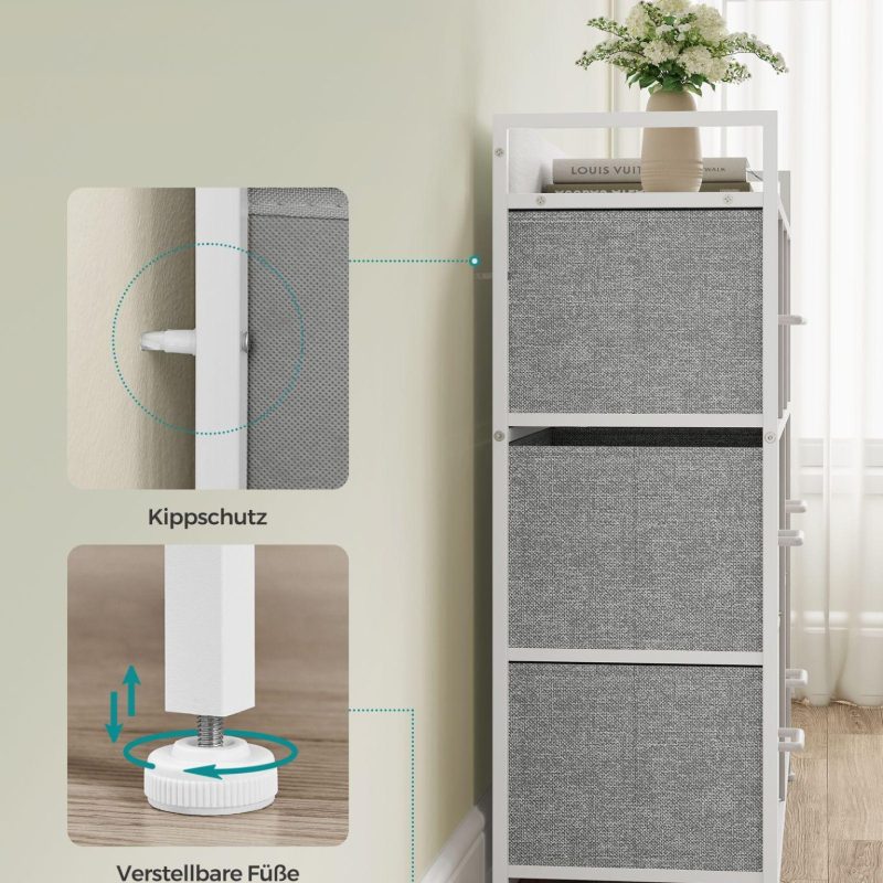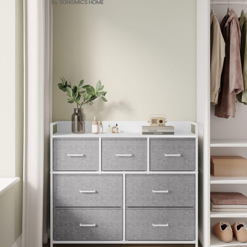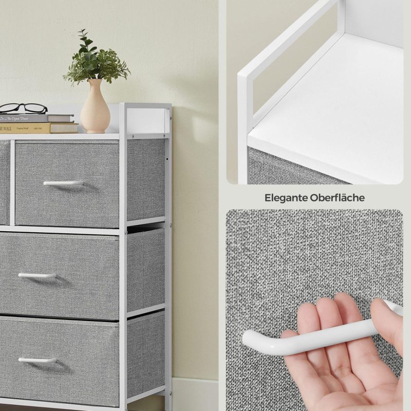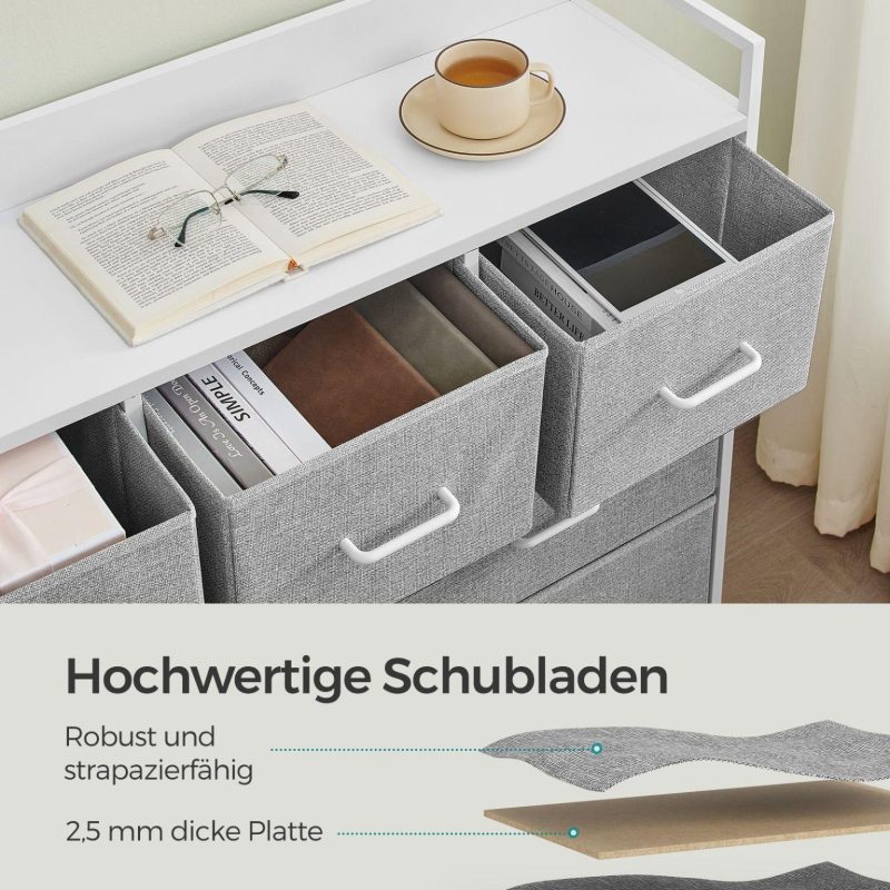 Hall kummut 29 x 98 x 85 cm pilvevalge, kapp, 7 kangast sahtlit käepidemetega, metallraam, industriaaldisain, tuvidehall-pilvevalge.