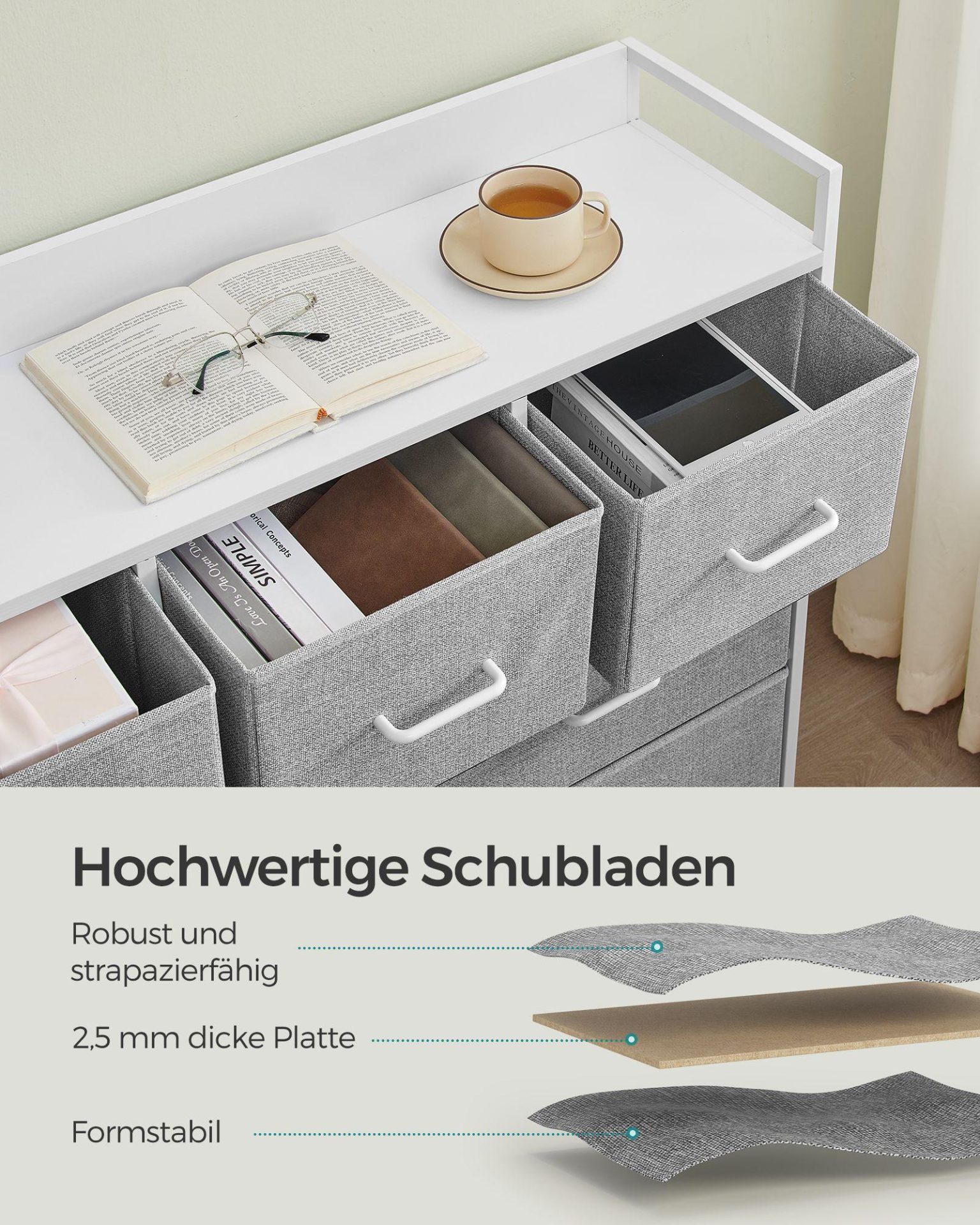 - Seitse sahtlit tagavad piisavalt hoiuruumi ja aitavad luua korda.