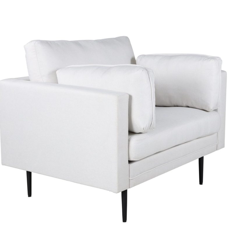 Tutvustame Boom üheistmelist diivanit, stiilset ja modernset tugitooli, mis on saadaval musta või heleda beeeži kangaga. Ajatu disain sisaldab sirgeid Põhjamaiseid vorme ja kitsaid musta metalli jalgu, lisades teie kodukujundusele luksusliku puudutuse.