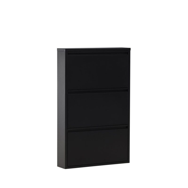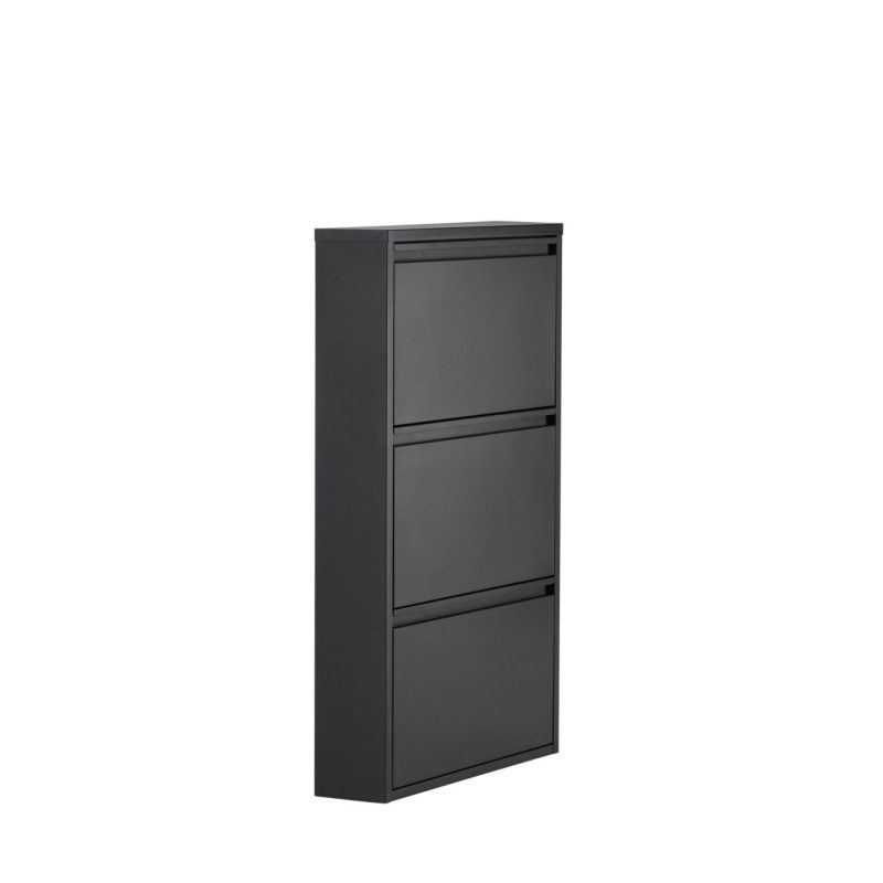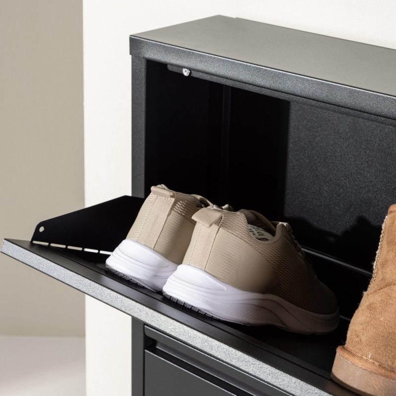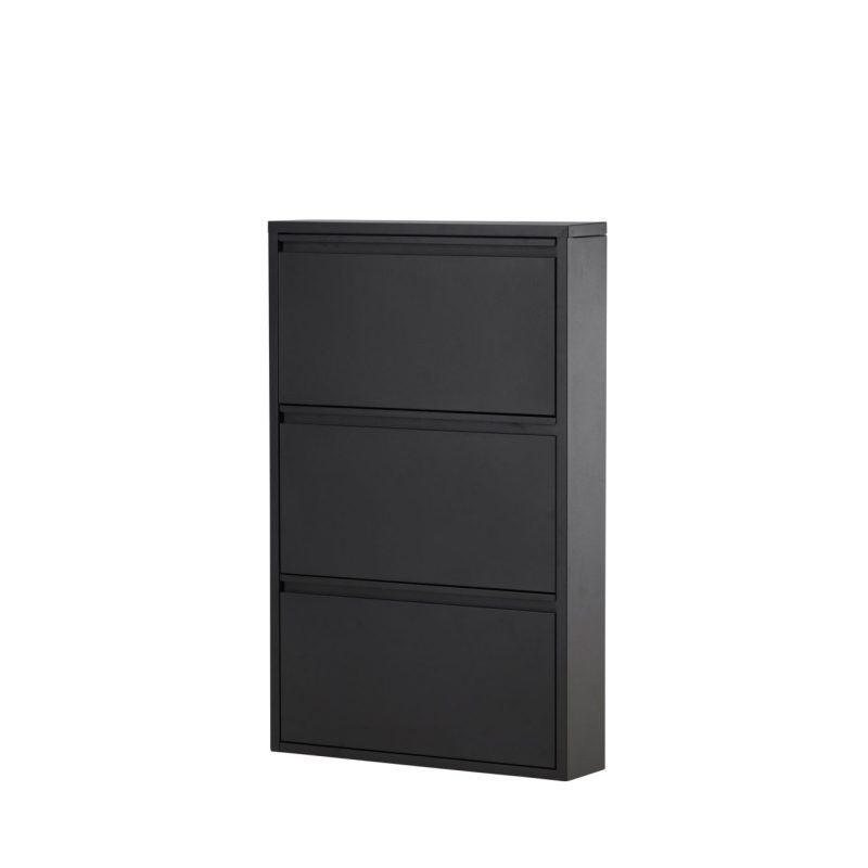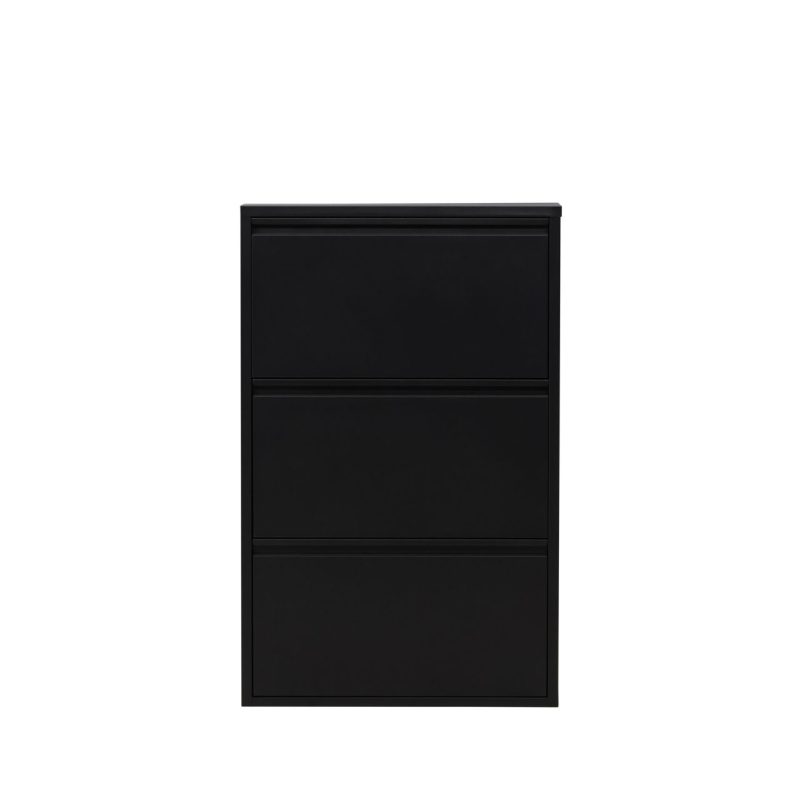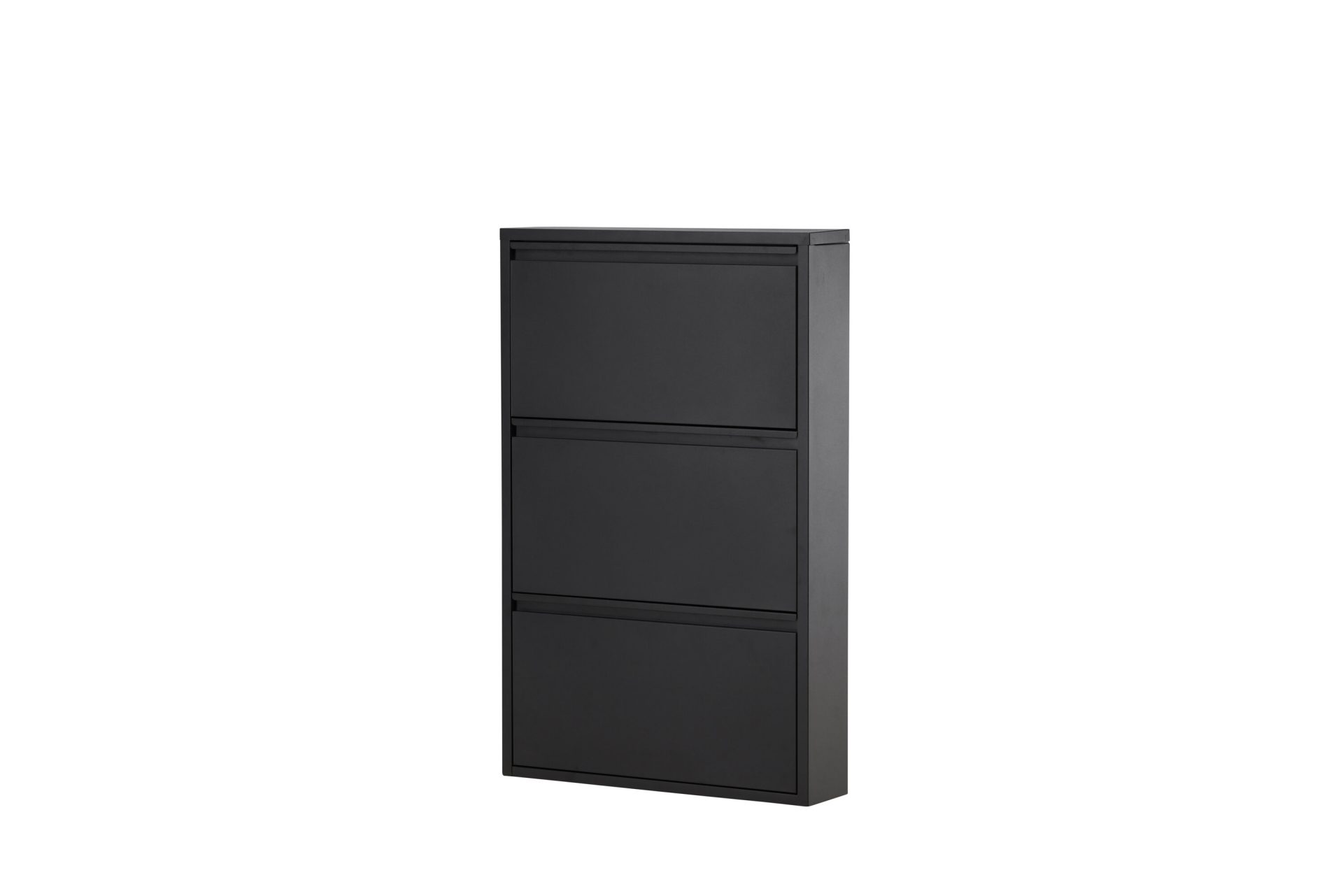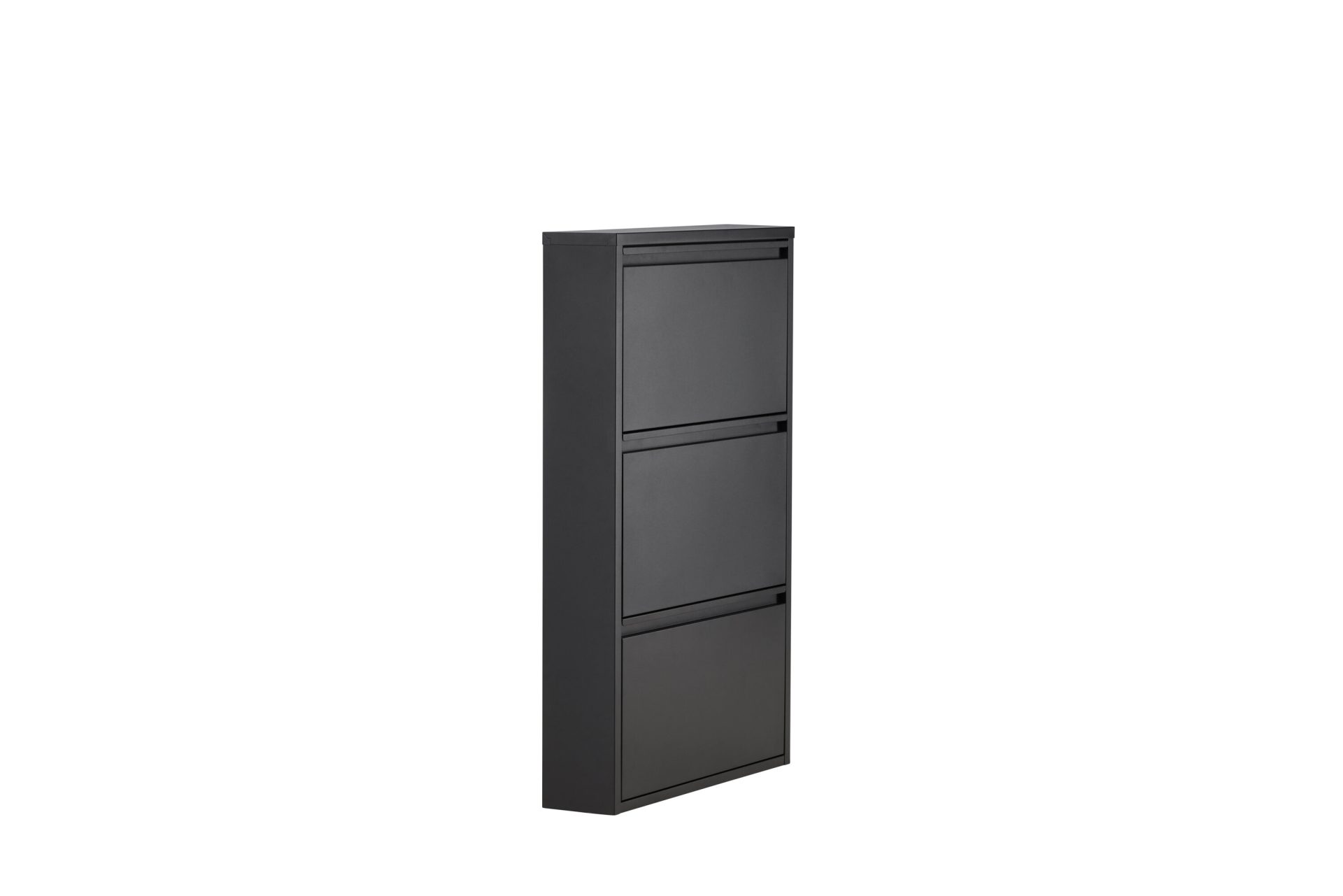 Tutvustame Bonito kingahoidlat stiilses mustas värvis! Hüvasti, kingade segadus, tänu sellele stiilsele ja funktsionaalsele kingakapile. Valmistatud tugevast mustast metallist, lisab see modernse puudutuse teie esikule, hoides samal ajal teie kingad korras kolme diskreetse ukse taga. Selle kitsas laius säästab ruumi ja toimib ka konsoollauana. Tõstke esiku dekoratsiooni ja tellige oma täna!