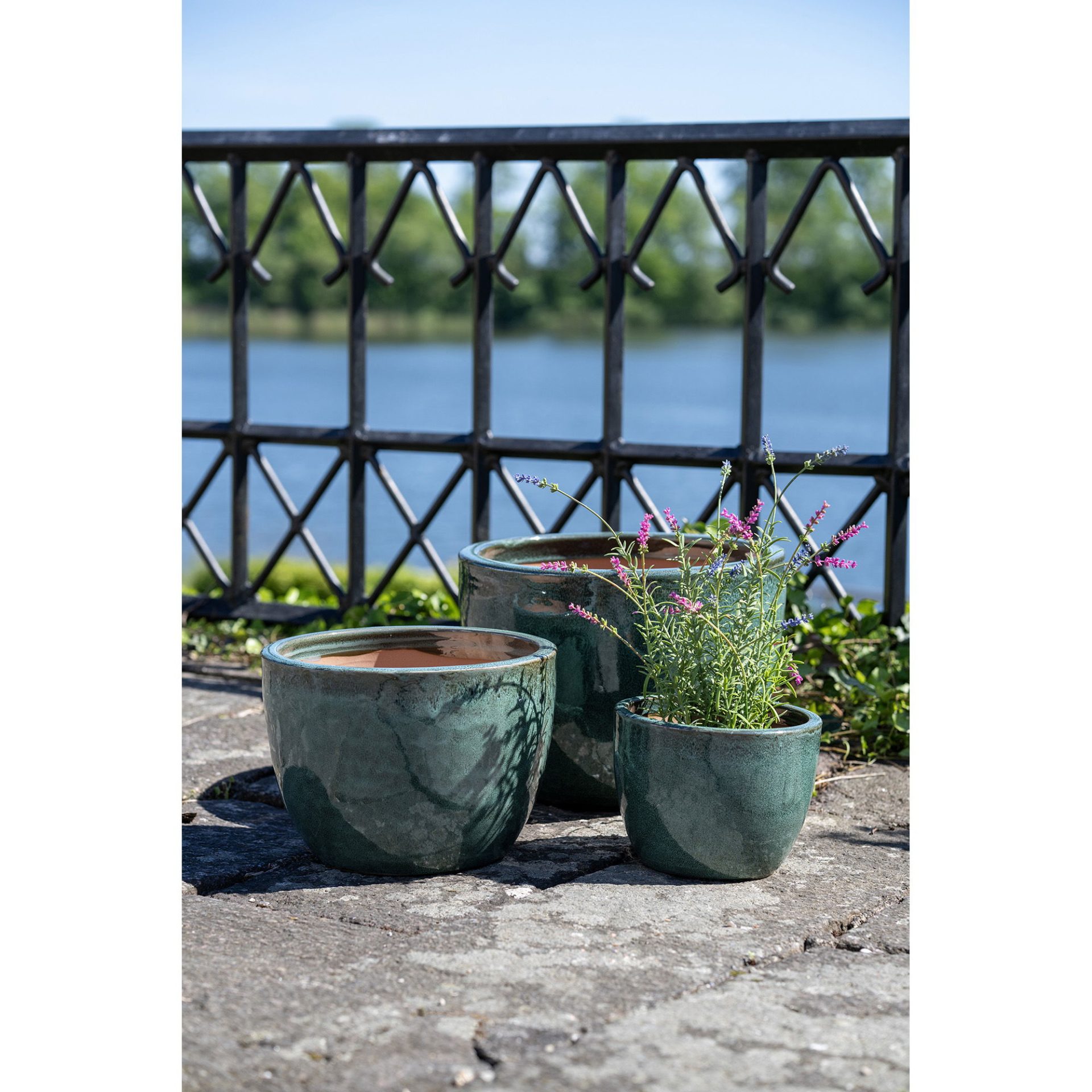 Pots, glazed ceramics, green set of 3 Dark Green Fiberclay ,