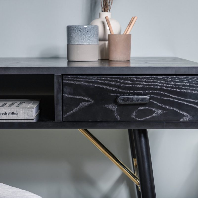 Kirjutuslaud koos riiuliga Must kuldne
