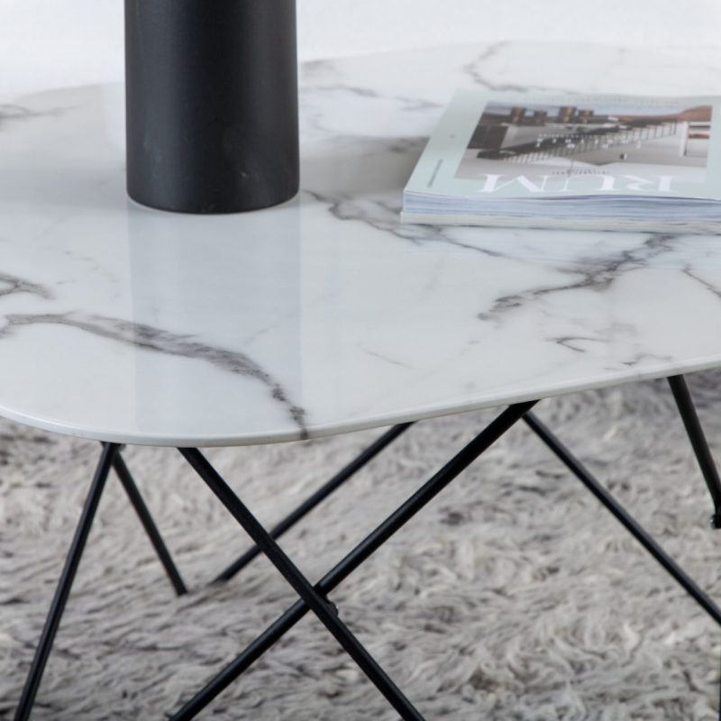 Tutvustame Tristar diivanilauda, mis on täiuslik segu elegantsist ja minimalismist. See ristkülikukujuline laud on varustatud musta metallraamiga ja valge marmorklaasist lauaplaadiga, luues elava atmosfääri igas eluruumis. Ümarate nurkadega pehmema ilme loomiseks on see laud ideaalne teie elutoa jaoks, mõõtmetega 80x80x50 cm.