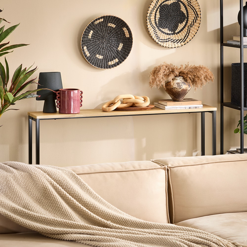 Konsoollaud 120x20x81 cm must pruun ühendab sooja puidust lauaplaadi ja tugeva metallraami, pakkudes samas mitmekülgset funktsionaalsust. Sobib suurepäraselt elutuppa, esikusse või magamistuppa, olles nii praktiline kui ka esteetiline sisustuselement.