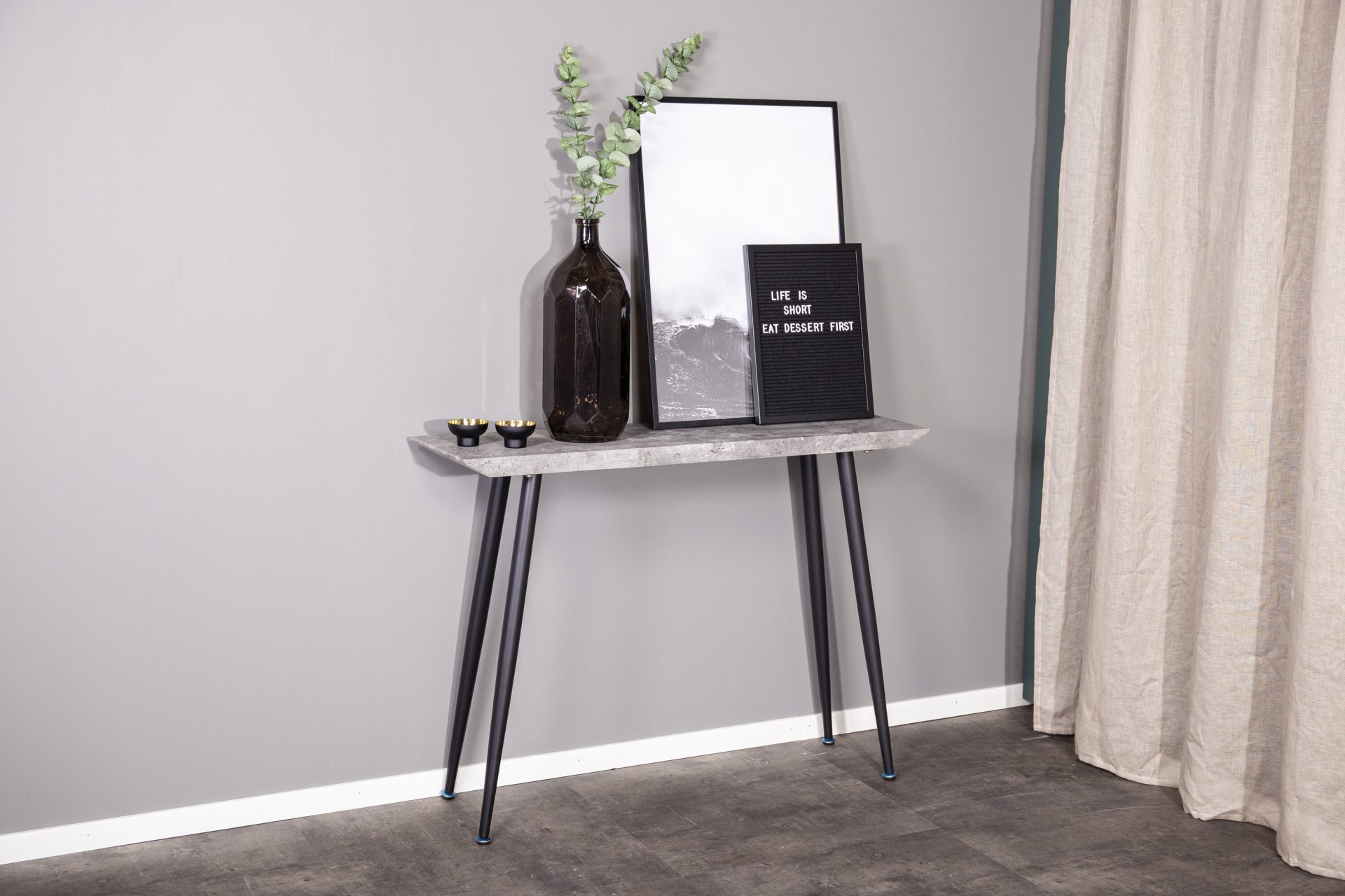 Tutvustame stiilset ja modernset musta värvi Edge kõrvalauda, millel on stiilne betooni-look viimistlus. See kaasaegne mööbliese on valmistatud kvaliteetsest MDF-ist, paberlamineeritud ja terasest. Laua kaal on 19,5 kg ja kandevõime 80 kg, mis teeb selle nii tugevaks kui ka funktsionaalseks. Mõõtmed 80 x 110 x 30 cm teevad selle ideaalseks sobivuseks igasse ruumi.