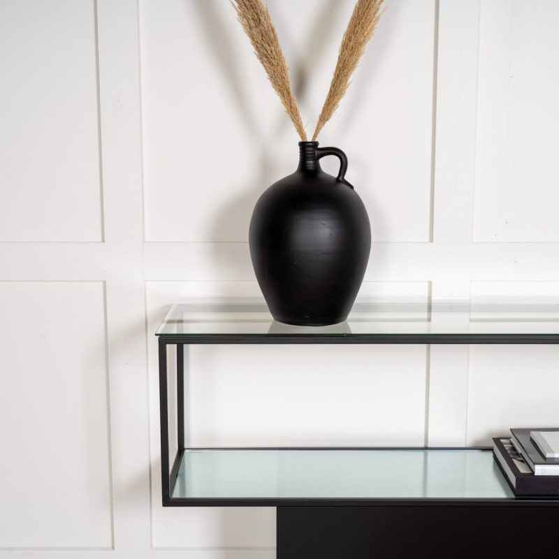 Tõsta oma kodu sisustust Maglehemi klaasi ja musta terasest riiuliga. See stiilne kõrvalaud ühendab funktsionaalsuse ja ilu, sobides ideaalselt tööstuslikku ja kaasaegsesse disaini. Tugev metallraam ja siledad lauaplaadid pakuvad nii hoiustamis- kui ka dekoreerimisruumi, muutes selle praktiliseks ja elegantseks lisandiks teie ruumis.