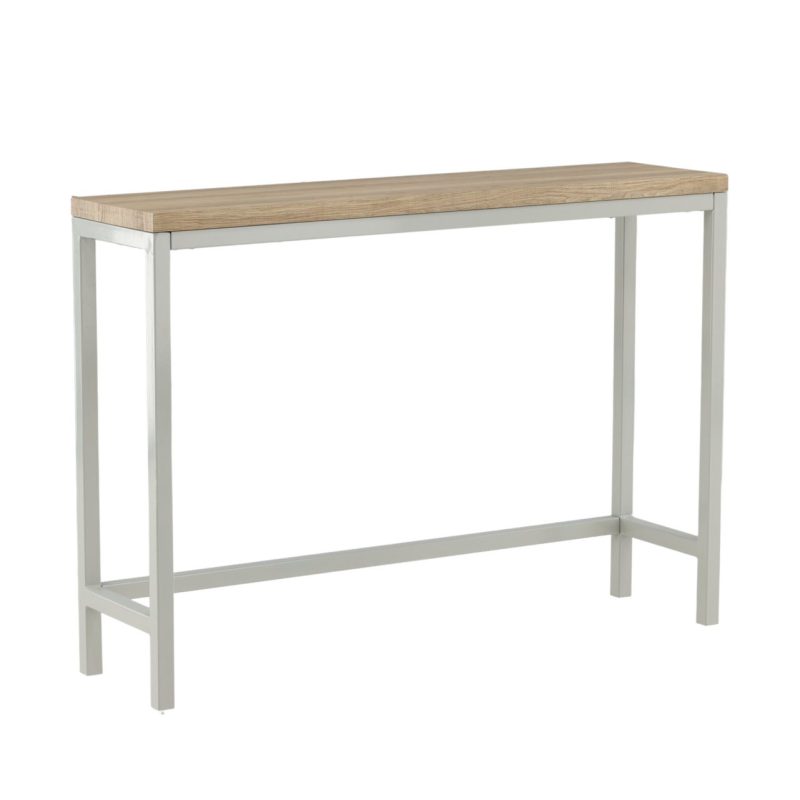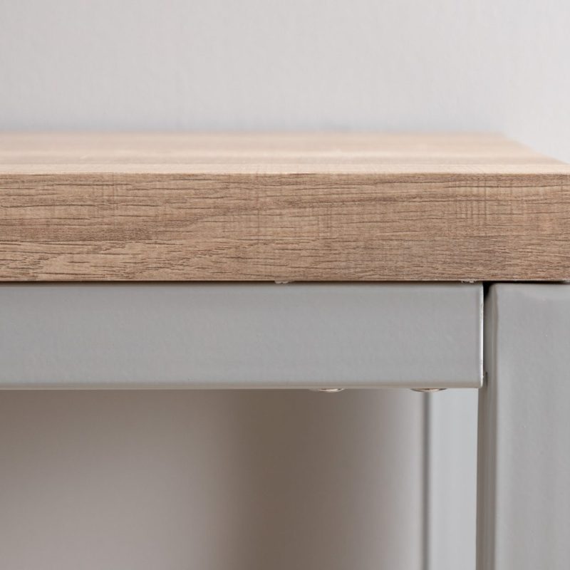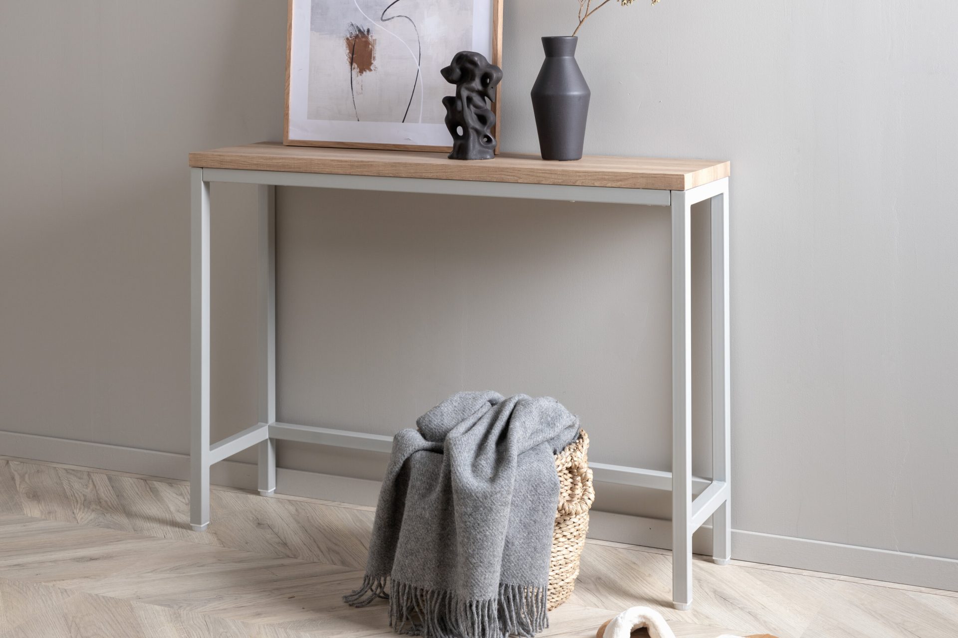 Tõsta oma elutoa ilmet Rise kõrvalauaga hallis/tuhapuu paberkattega. Konsoollaud Rise 110x30x80 cm Hall on kaasaegse disainiga, millel on valge rauast alus ja looduslik MDF-plaat tuhapuu paberkattega. Mitmekülgne ja šikk, see toimib nii funktsionaalse pinnana kui ka dekoratiivse aktsendina. Põhjamaade inspireeritud disain lisab teie ruumi tööstusliku puudutuse, luues modernse ja õhulise õhkkonna. Mõõtmed: 110x30x80 cm.
