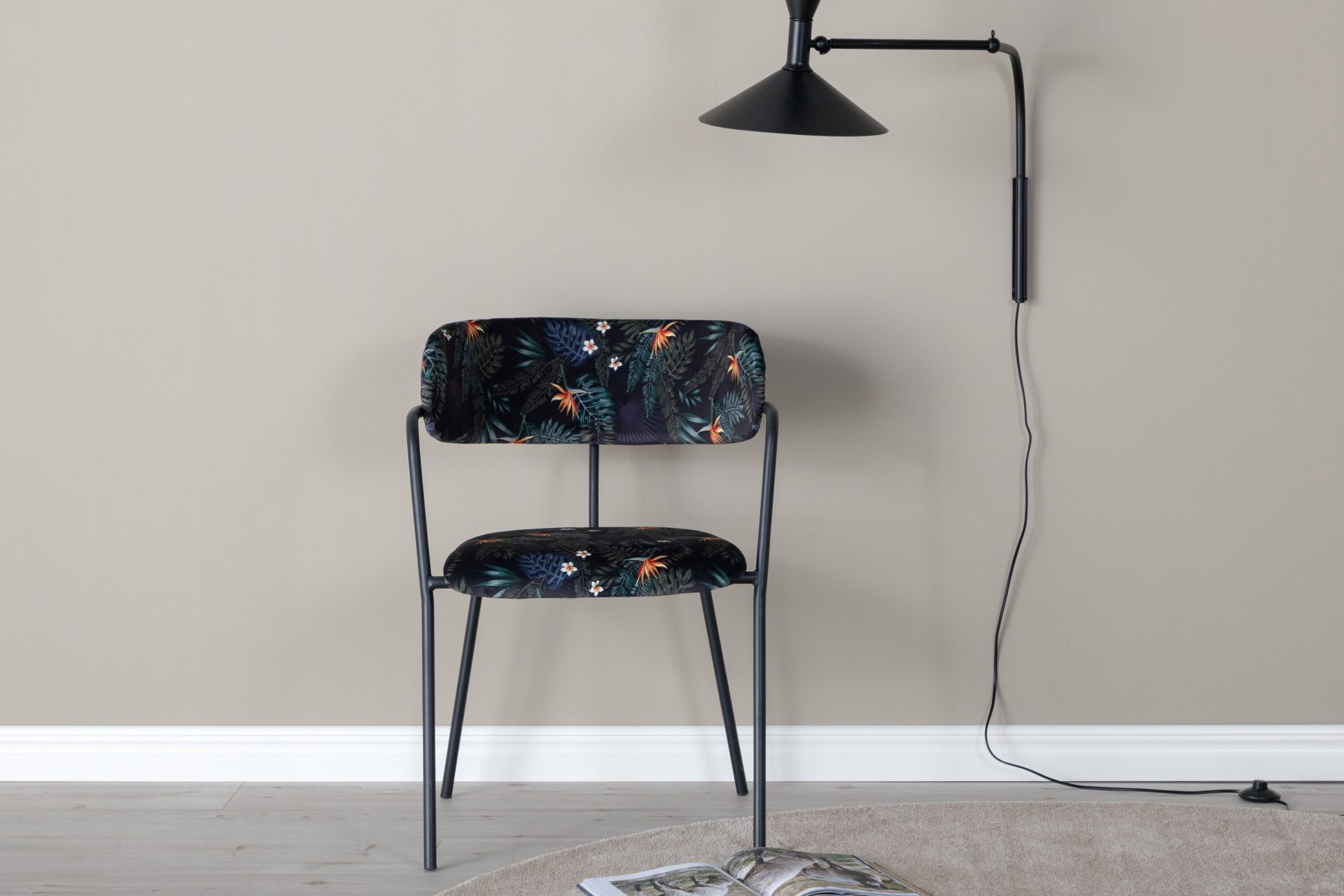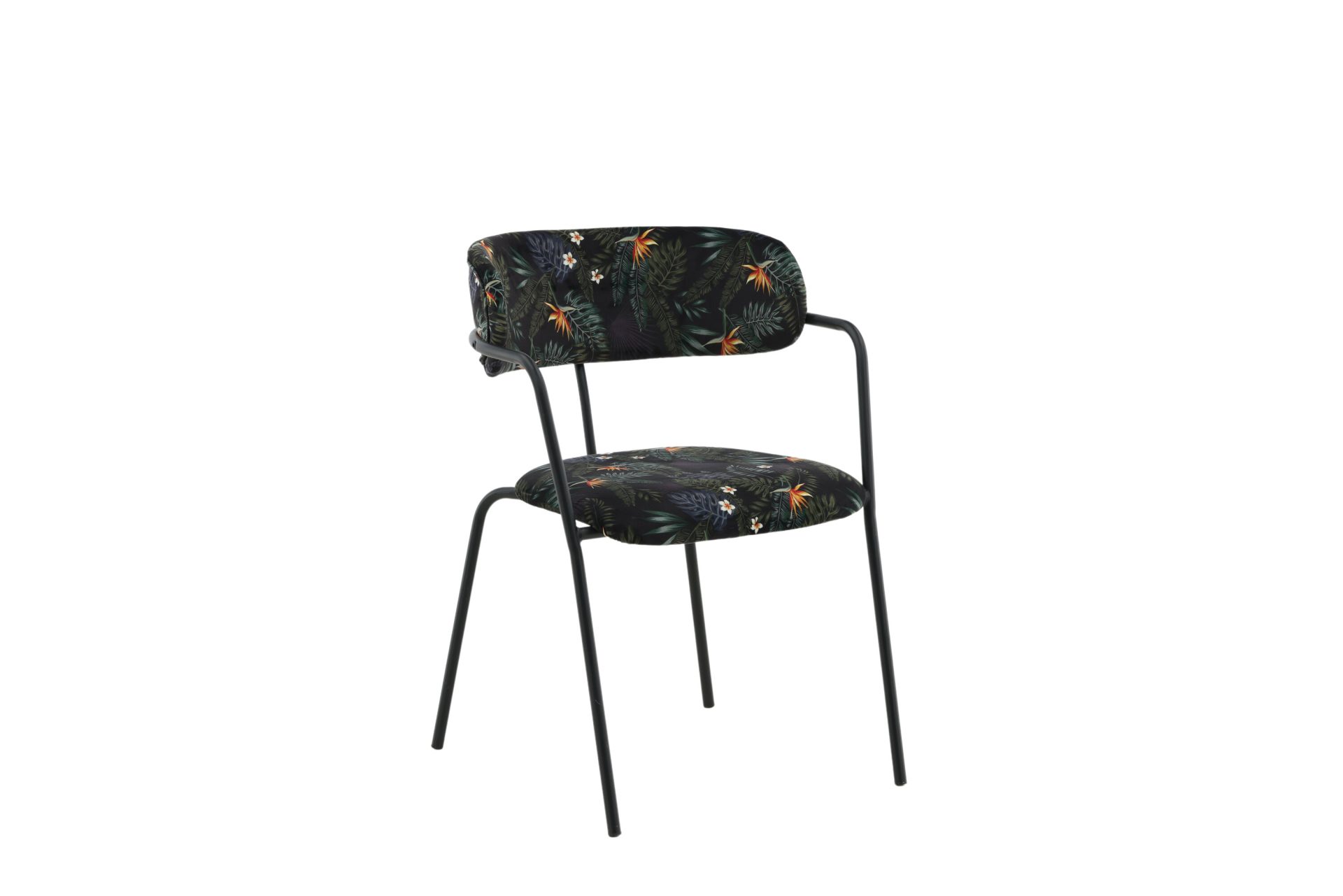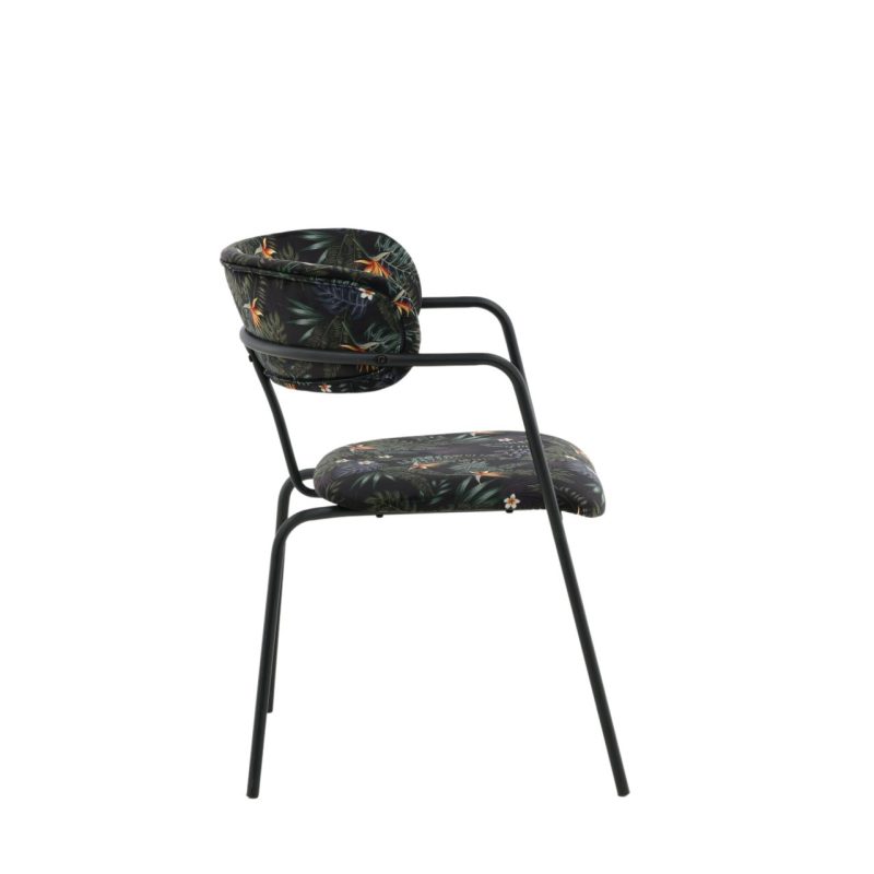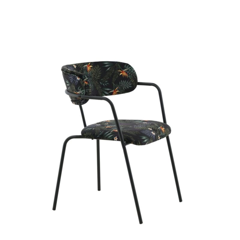 Tutvustame Arrow tugitooli 2-pakki mustade jalgade ja musta lillelise kangaga. See stiilne tugitool on varustatud musta pulbervärvitud metallraami, jalgade ja integreeritud käetoega, mida täiendab polsterdatud iste ja seljatugi silmatorkavas mustas lillelises polüesterkangas. Lisage oma ruumi elegantsi selle ainulaadse tükiga, mis vajab osalist kokkupanekut.