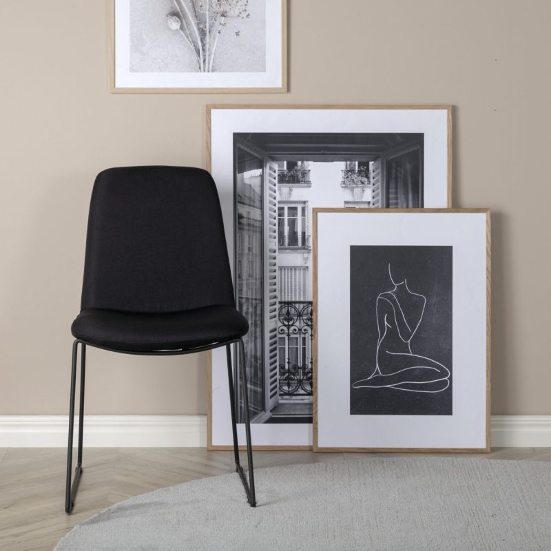 Tutvustame Muce söögitooli mustade jalgade ja musta kangaga! See stiilne tool on minimalistliku disainiga mustas toonis, mis sobib ideaalselt igasse söögikohta. Toolil on must pulbervärvitud metallraam ja mugav iste ning seljatugi, mis on polsterdatud musta polüesterkangaga pehme polsterdusega. Vajalik on osaline kokkupanek. Valmistuge nauditavateks söögikordadeks selle elegantse tooliga!