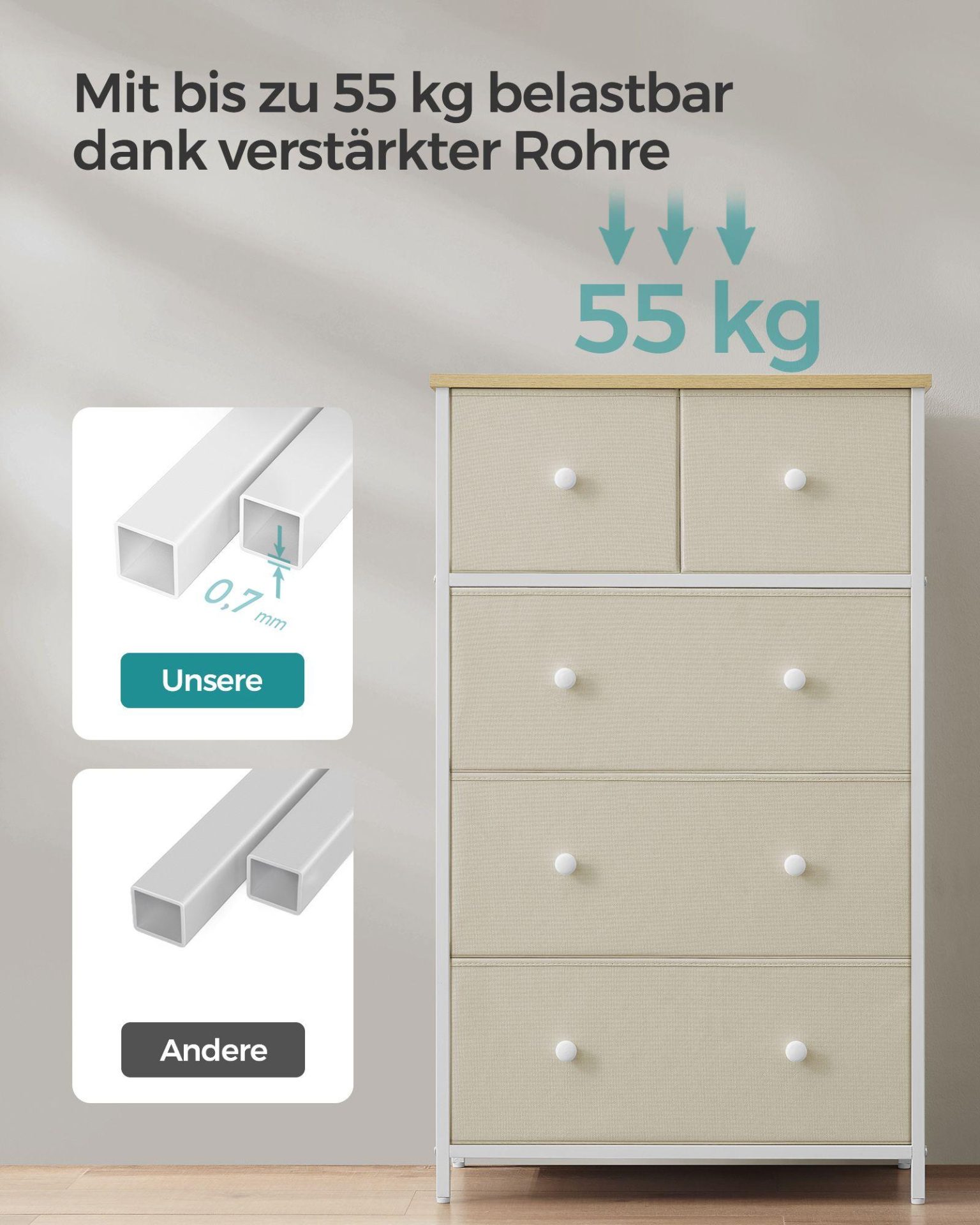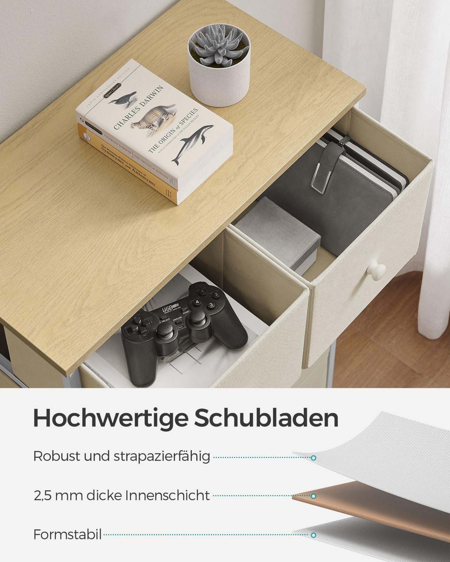 - Viis kangast sahtlit tagavad piisavalt hoiuruumi ja aitavad luua korda.