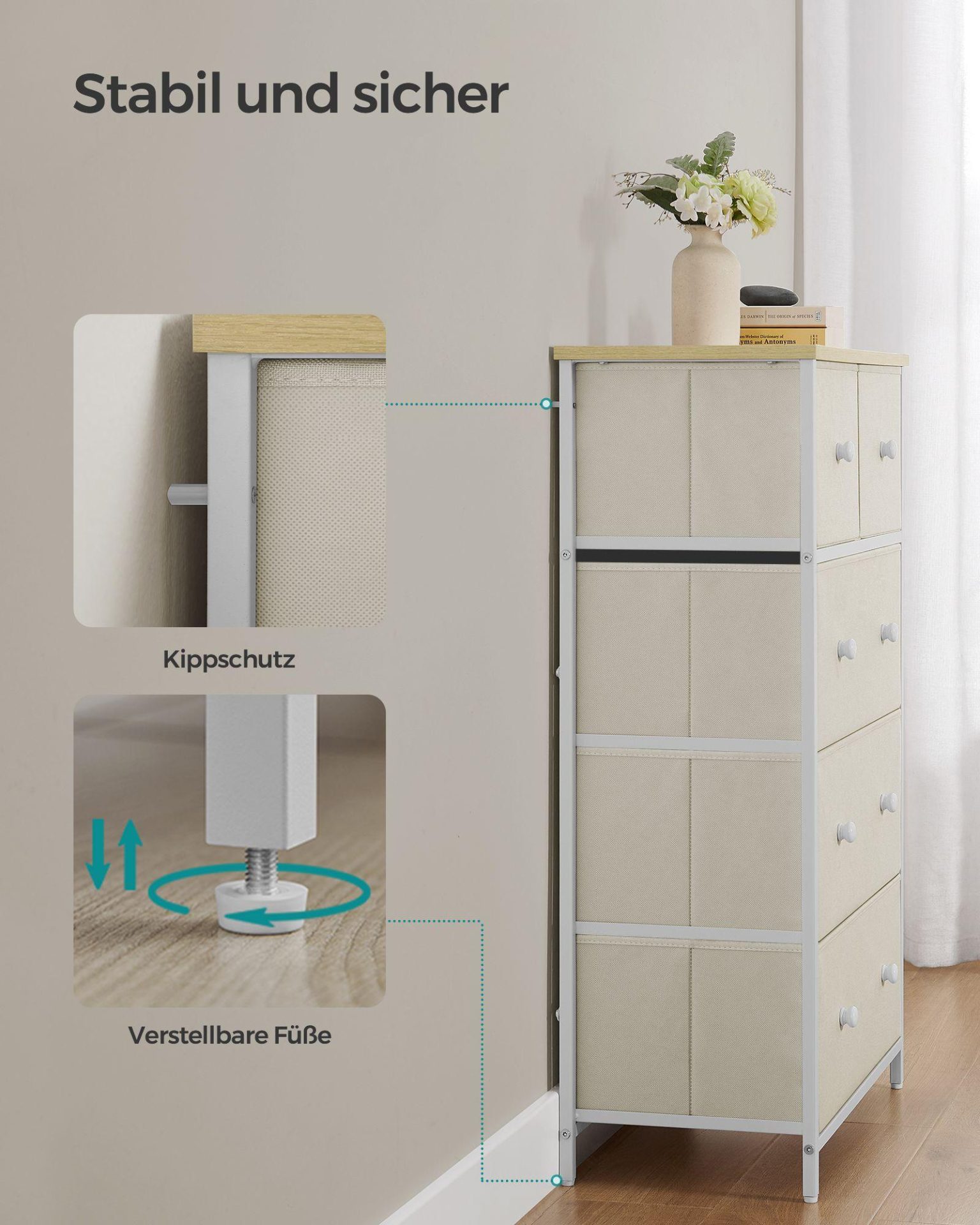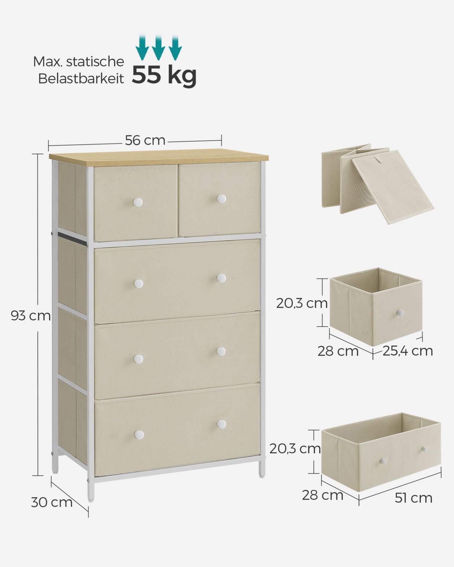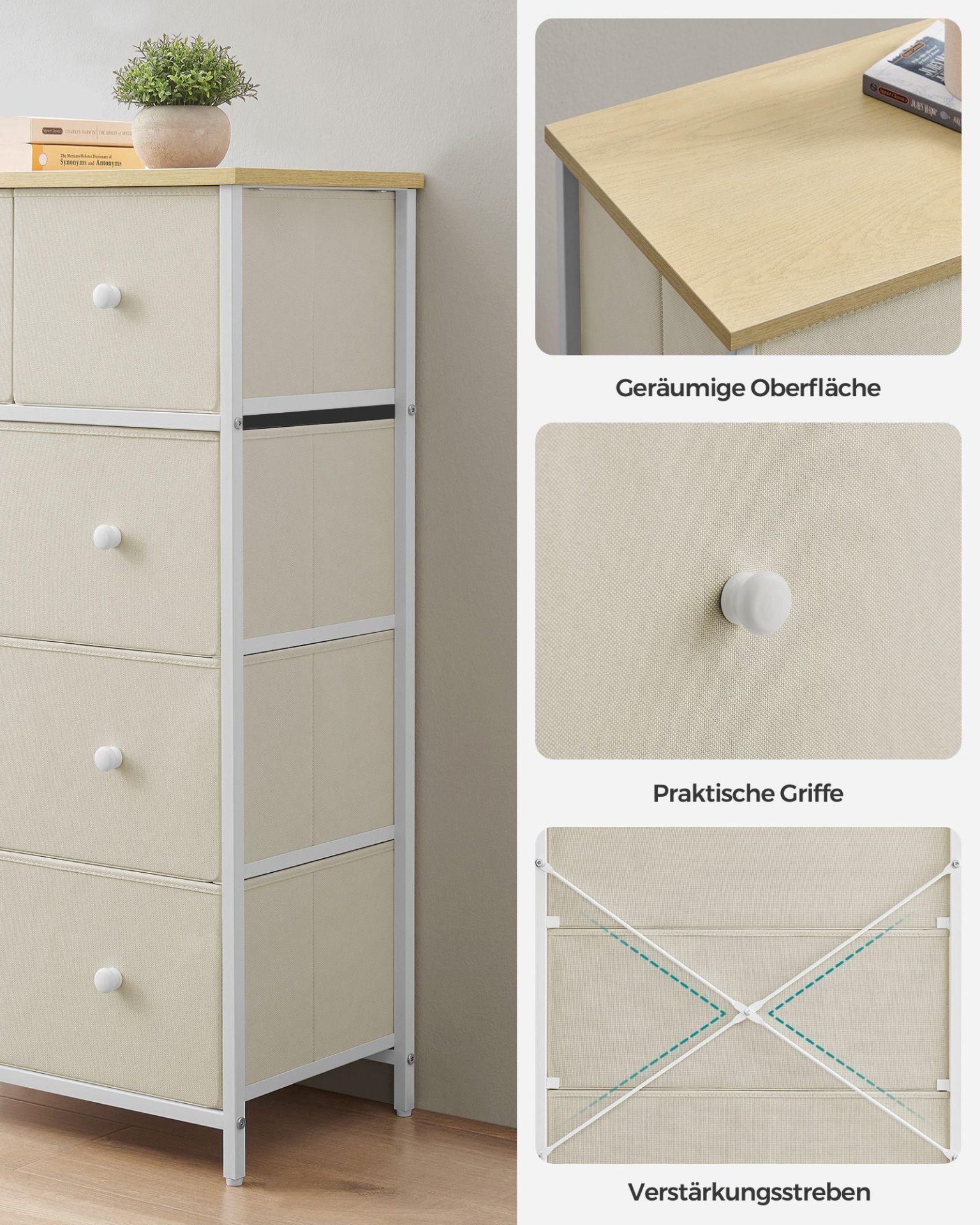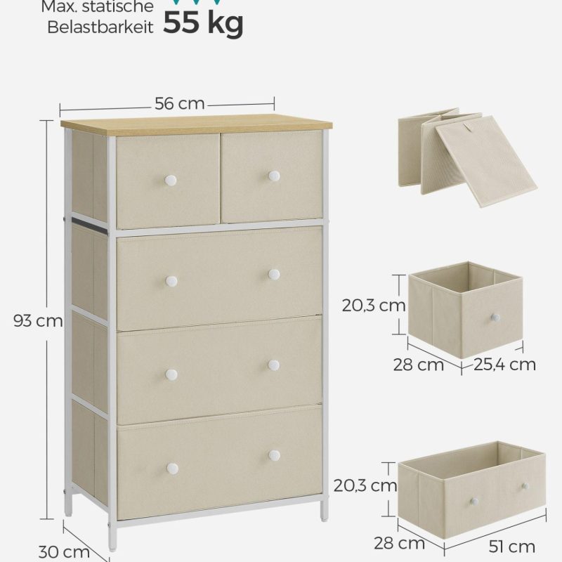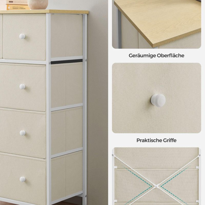 - 1 x Kõrge kummut 30 x 56 x 93 cm kreemvalge