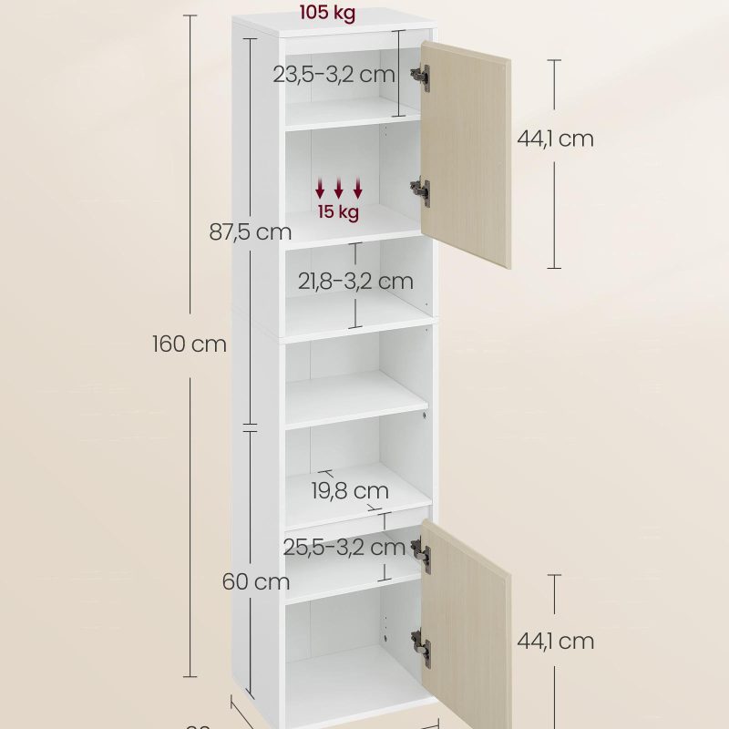 Kõrge vannitoakapp seinale 30 x 40 x 160 cm omadused: