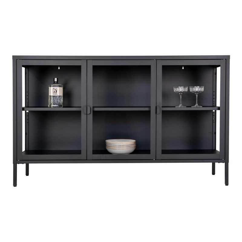 Brisbane Sideboard – küljepaneel, must, klaasist ustega