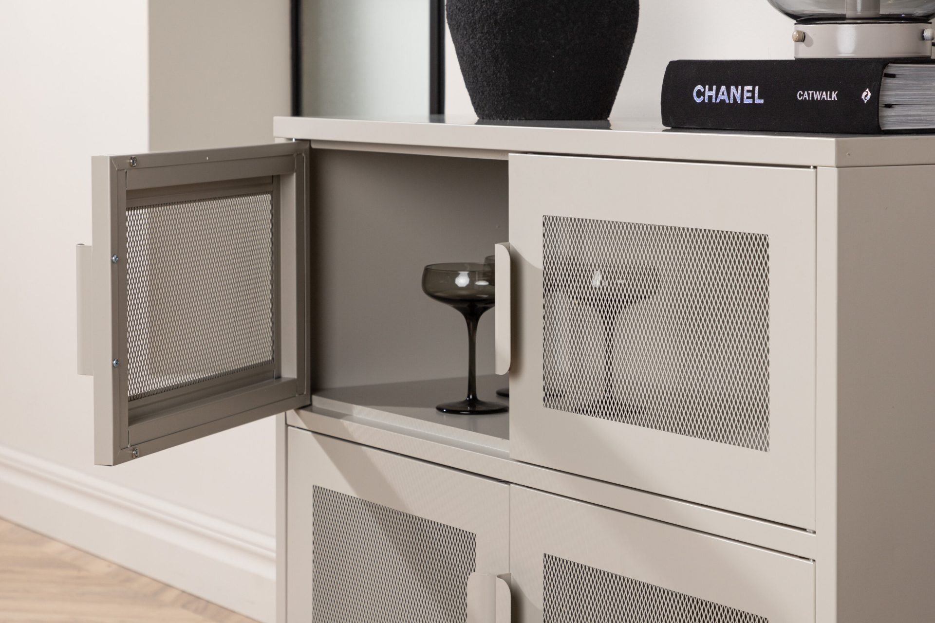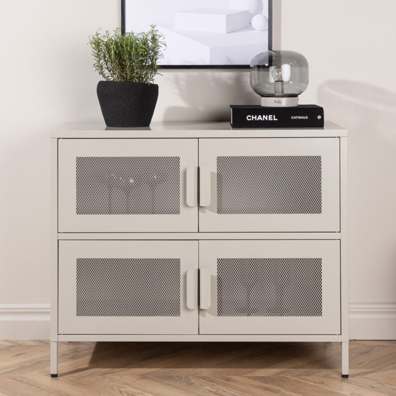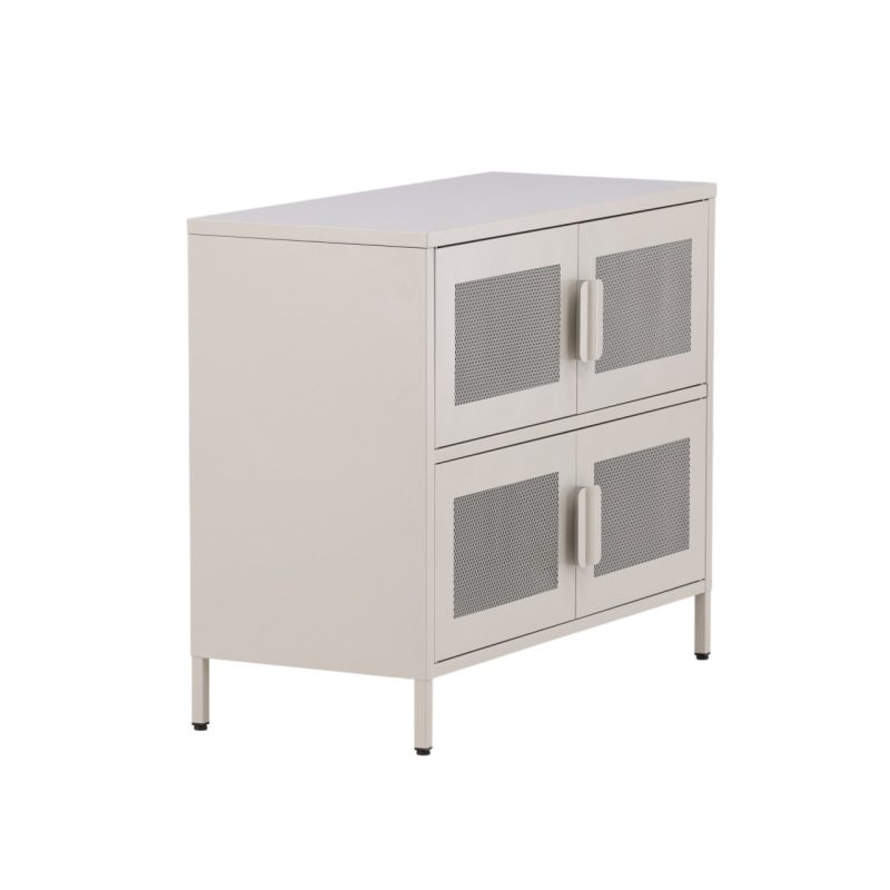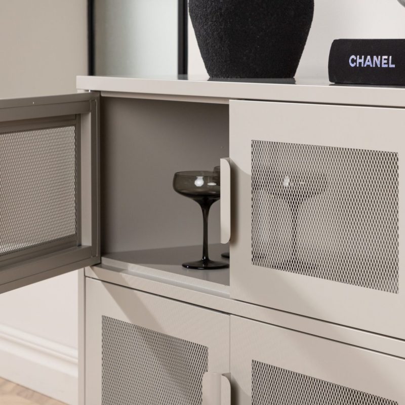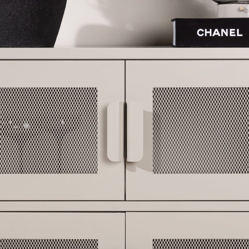 Tutvustame Nett kappi beezis värvitoonis, praktilist hoiustamise lahendust tööstusliku disaini esteetikaga. Valmistatud tugevast terasest võrgusilmadega, pakub see kapp kahte riiulit ja nelja avarat sahtlit poolavatud hoiustamiseks. Robustne sügavus ja kõrged jalad annavad sellele stiilse ja funktsionaalse võlu, ideaalne dekoratsioonide eksponeerimiseks peal. Tõstke oma kodu korraldust selle nutika mööblitükiga.