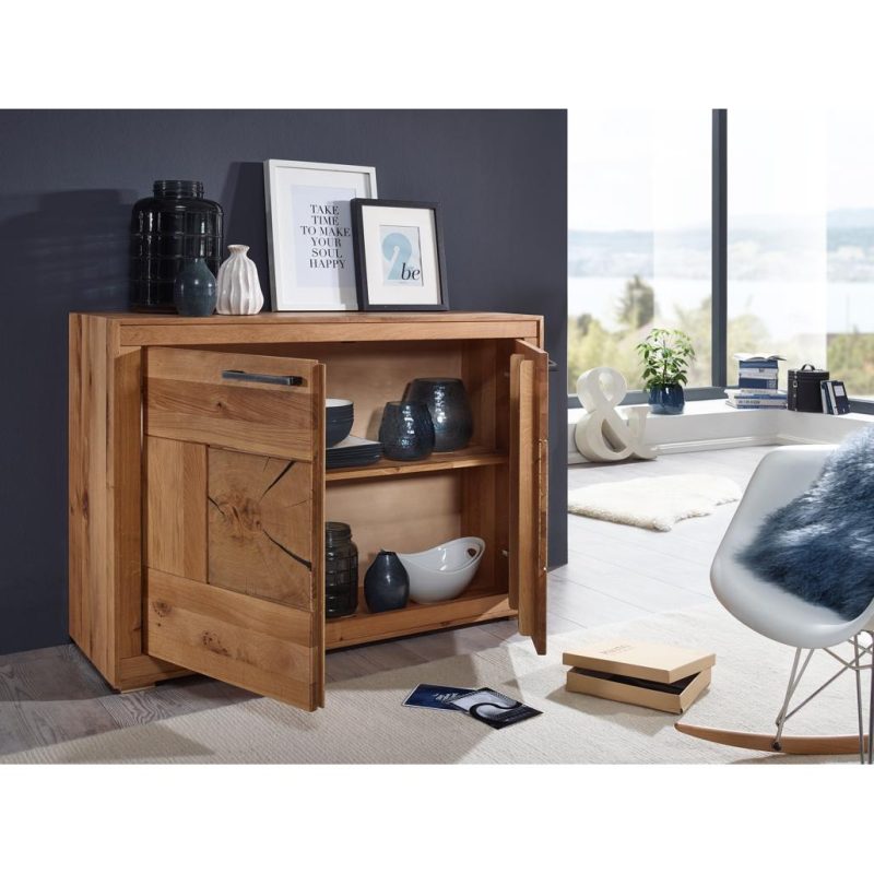 - Korpus ja esipaneelid: Valmistatud täistammepuidust, mille eriline tekstuur, oksakohad ja väikesed praod loovad mööblile unikaalse iseloomu.