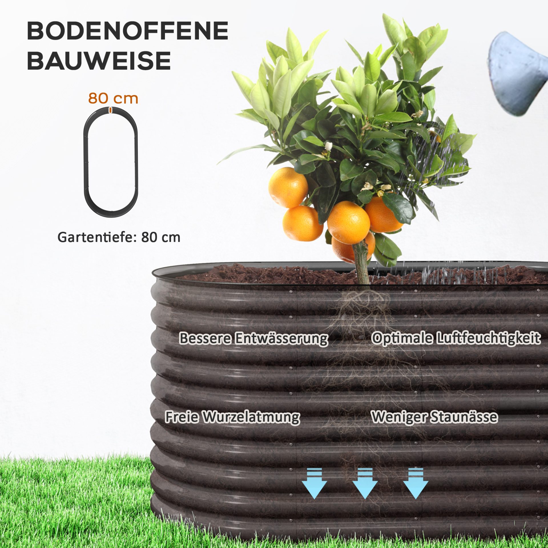 Tõsta oma aiandusmäng uuele tasemele terasest tõstetud aiavoodiga. See virnastatav ja modulaarne istutusvoodi sobib suurepäraselt teie aeda, rõdule või terrassile. Tsingitud terasest valmistatud roostevastane voodi võib vastu pidada karmidele ilmastikutingimustele ja suurele survele. Selle ovaalne, laineline struktuur pakub rohkelt ruumi ja sügavust, muutes selle ideaalseks sügavalt juurdunud taimedele. Avatud põhi tagab juurtele suurepärase drenaaži, samas kui kummiga tihendatud ohutusääred muudavad kokkupaneku turvalisemaks ja lihtsamaks.