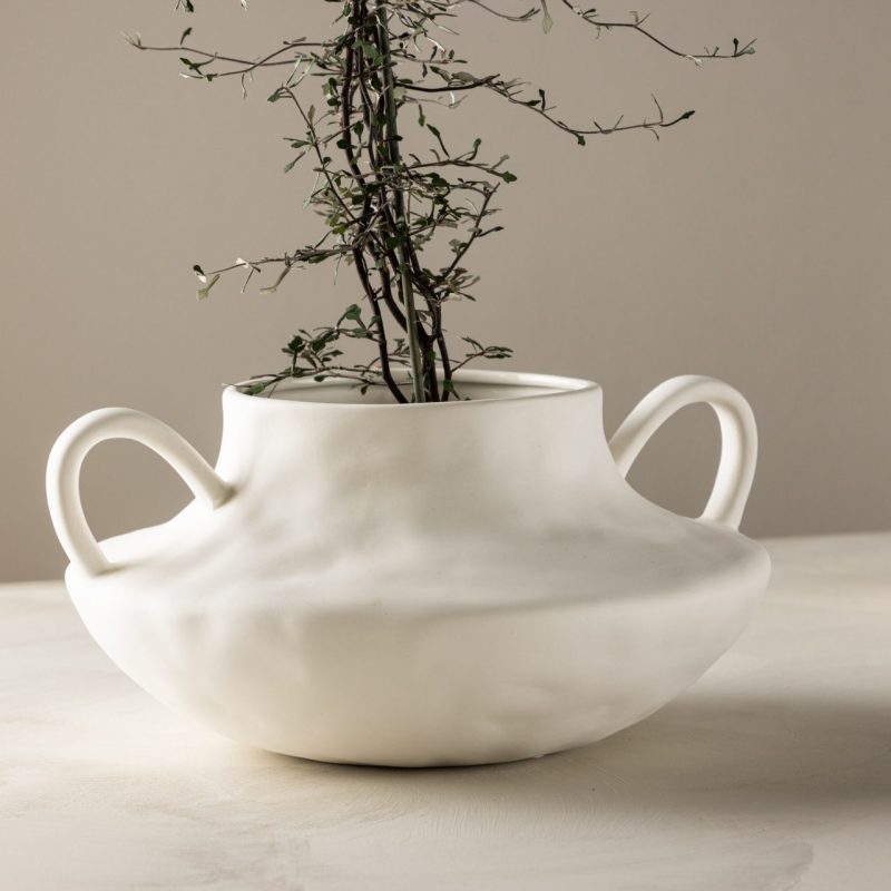 Tutvustame Holda potti – stiilne lisand teie kodukujundusele. Valmistatud elegantsest kivimassist heledas toonis, see 31 x 29 x 15Hcm pott on sileda ümmarguse disainiga, millel on iseloomulikud aasad mõlemal küljel. Ideaalne teie lemmiklillede esitlemiseks ühendab Holda stiili ja funktsionaalsust. Tõstke oma ruumi esile selle kaasaegse ja mitmekülgse potiga.