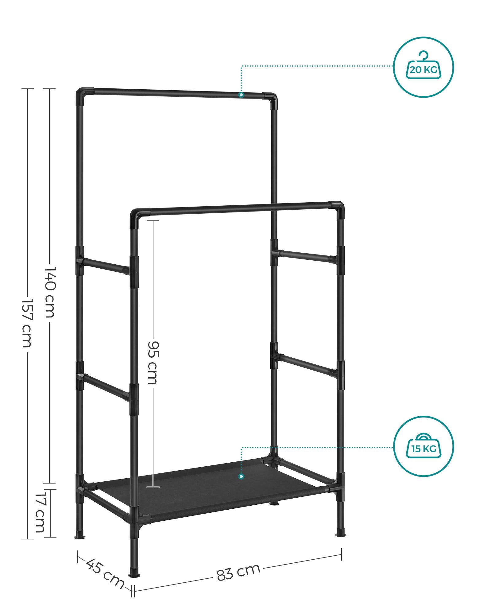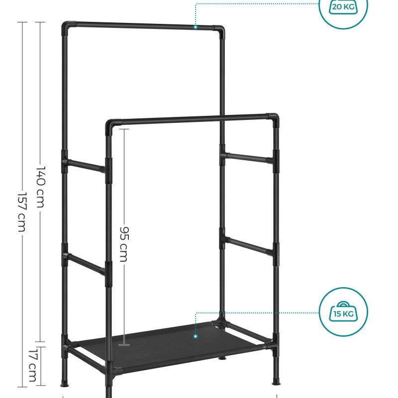 - Kahe riidestange ja ühe riiuliga pakub piisavalt hoiuruumi erinevatele rõivastele ja aksessuaaridele
