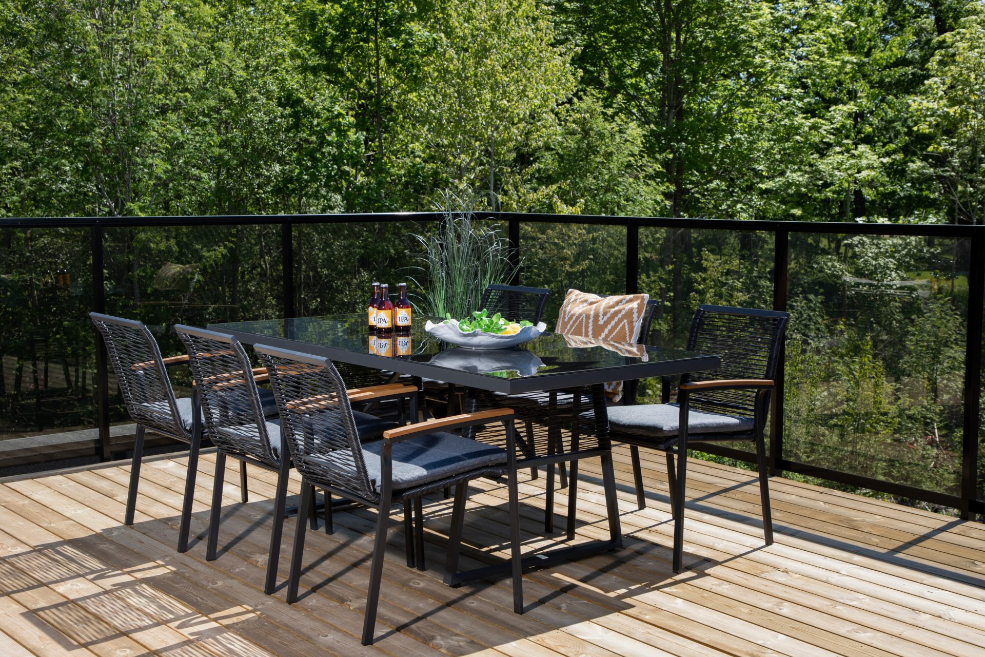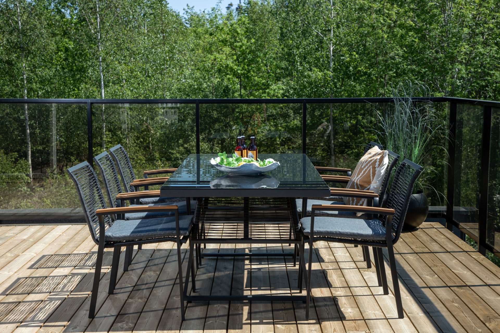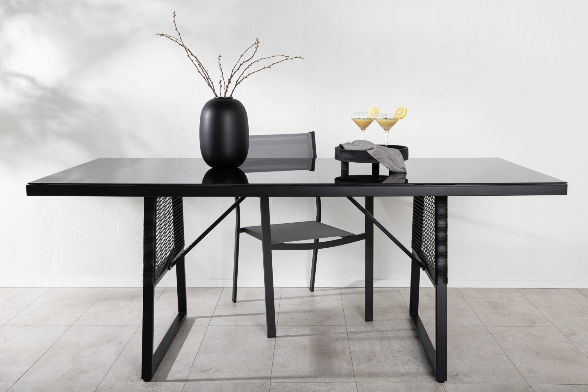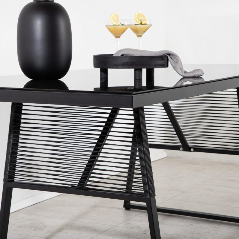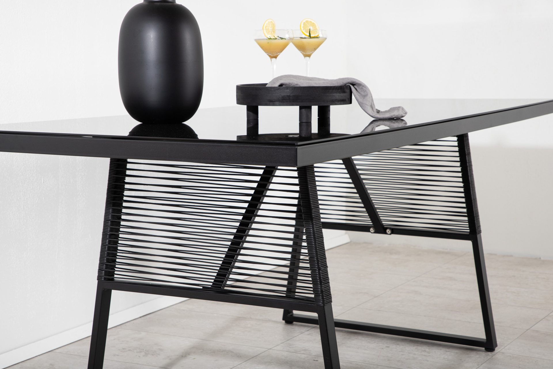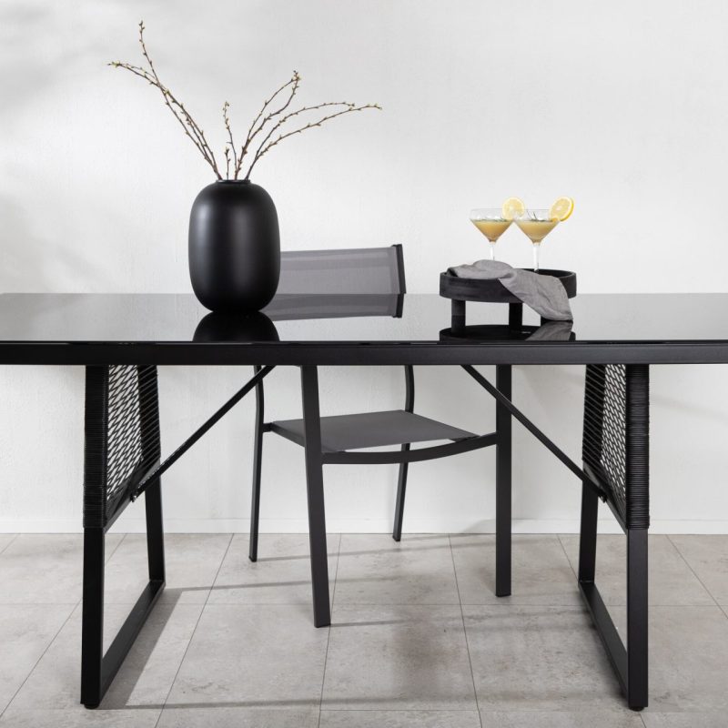 Tutvustame Dallas söögilauda, mis on stiilne lisand teie väliruumi. Mustast alumiiniumist valmistatud laud, millel on tume klaasist lauaplaat ja keerukad nööridetailid raamil, õhkab elegantsi. Kombineerige seda samast seeriast toolidega, et saada ühtne välimus, mis sobib suurepäraselt suvisteks koosviibimisteks lähedastega.