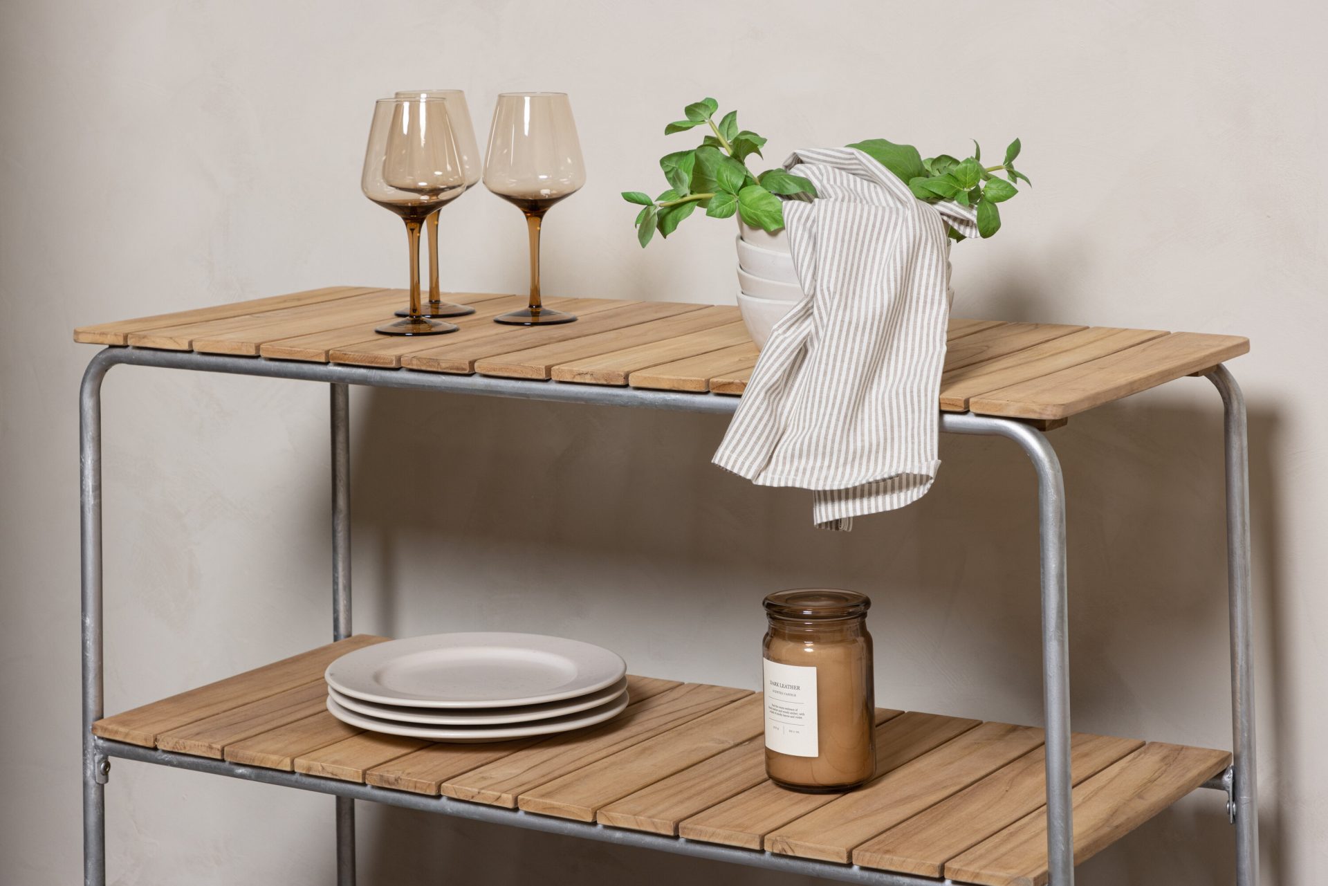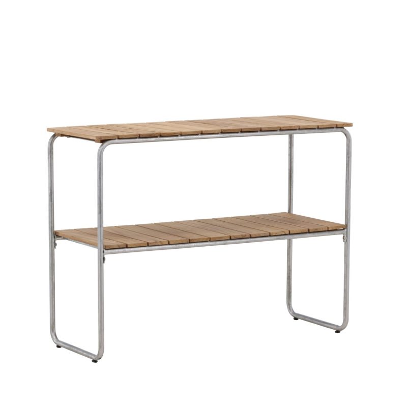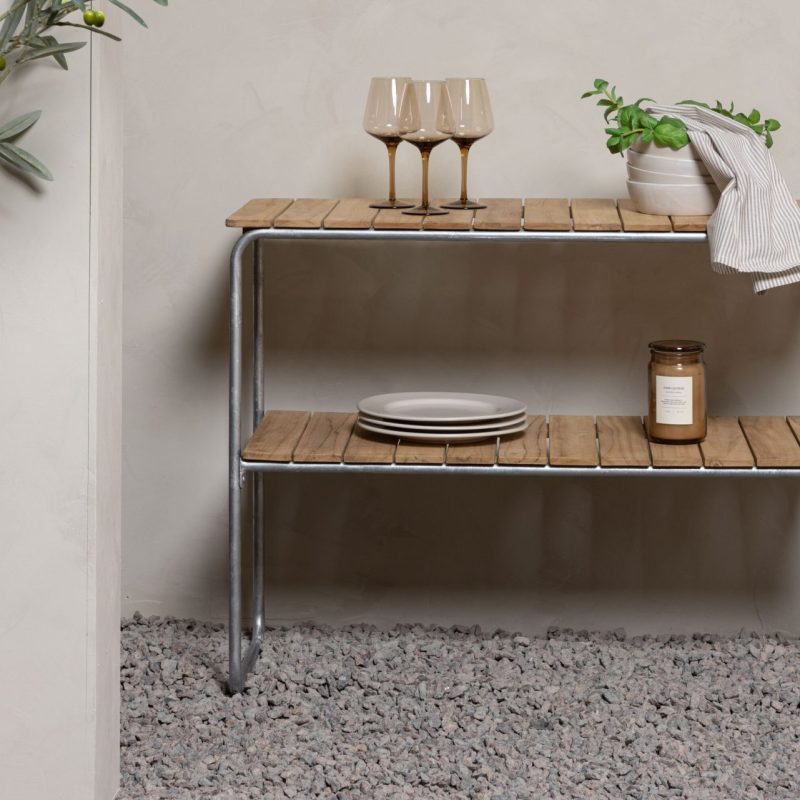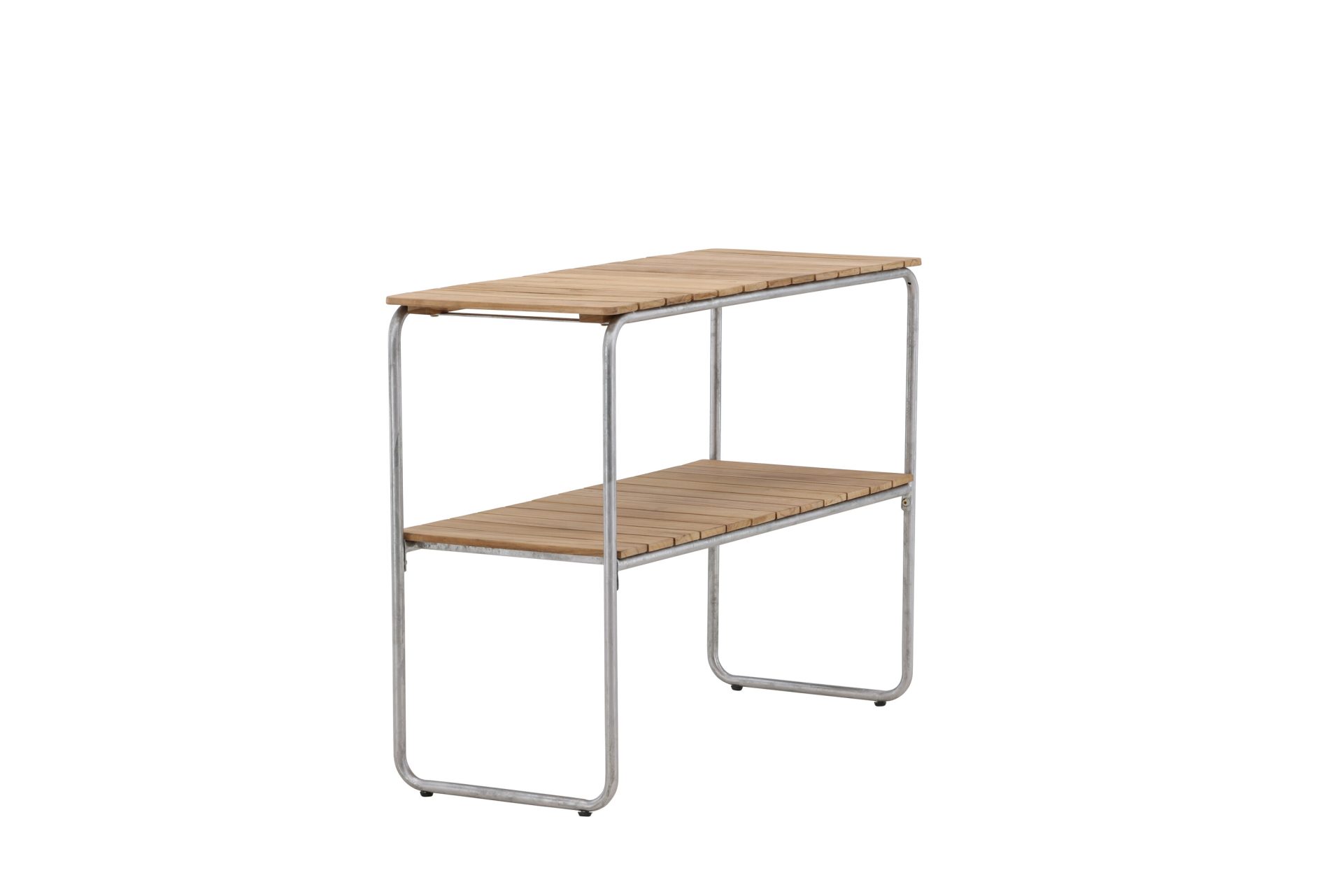 Täiusta oma õueala Holmsundi kõrvalaud Zink hõbedases värvitoonis. See ristkülikukujuline kõrvalaud sisaldab kahte tiigipuust riiulit ja siledat hõbedast terasraami. Ideaalne nii stiili kui ka funktsionaalsuse lisamiseks teie terrassile, see laud sobib suurepäraselt teie väliköögi või söögiala lähedale.