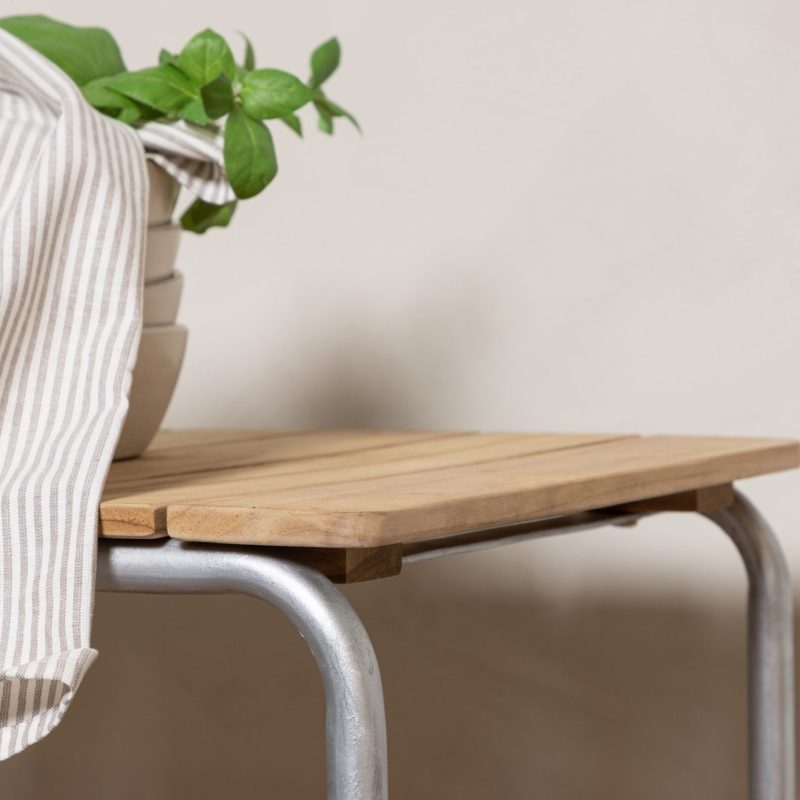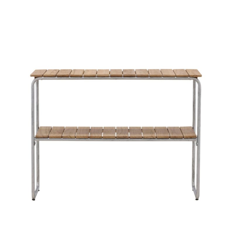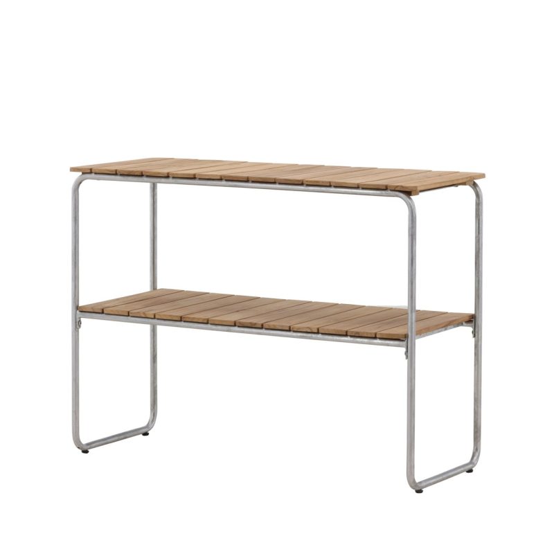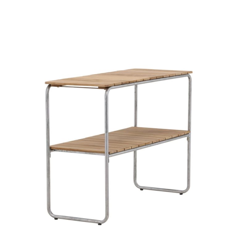 Täiusta oma õueala Holmsundi kõrvalaud Zink hõbedases värvitoonis. See ristkülikukujuline kõrvalaud sisaldab kahte tiigipuust riiulit ja siledat hõbedast terasraami. Ideaalne nii stiili kui ka funktsionaalsuse lisamiseks teie terrassile, see laud sobib suurepäraselt teie väliköögi või söögiala lähedale.