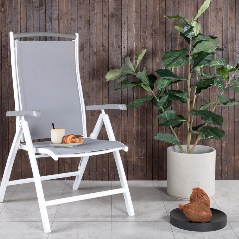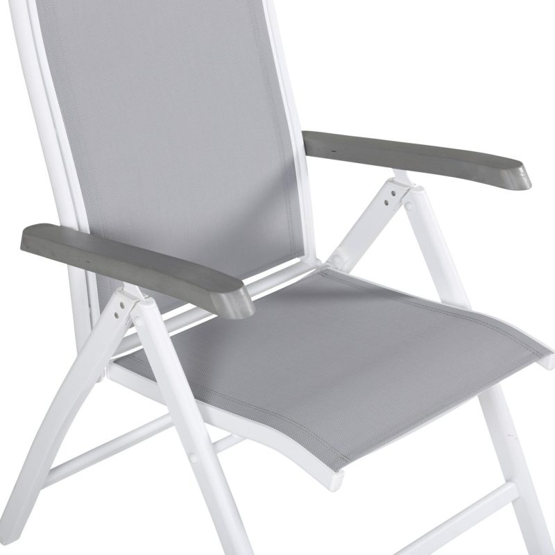 Tutvustame Albany 5-asendiga tooli 2-pakki valges/hallis! Mugav, praktiline ja stiilne, see hall tool on varustatud mõnusate käetugedega lisamugavuse tagamiseks. Kokkuklapitav seljatugi lisab optimaalset mugavust, sobides ideaalselt nii aeda kui rõdule. Naudi lõõgastavat suve väljas Albany’ga!