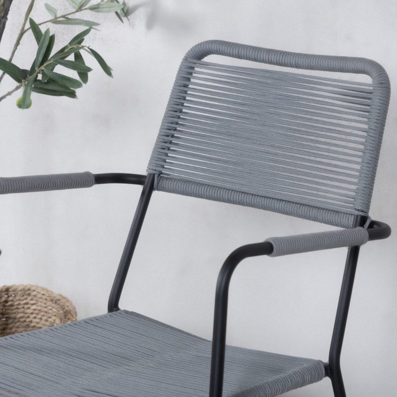 Tutvustame Lindos tugitooli 2-pakki mustas alumiiniumis/hallist köiest, mis on ideaalne modernse elegantsi lisamiseks teie patiolle. Toolil on mustad alumiiniumist käetoed ja hallist köiest punutud iste, mis muudab selle mitmekülgseks disainiikooniks, mis sobib erinevatesse seadistustesse. Lindos tugitool on mugavuse huvides virnastatav ja kutsub teid nautima paljusid tulevasi sotsiaalseid hetki.