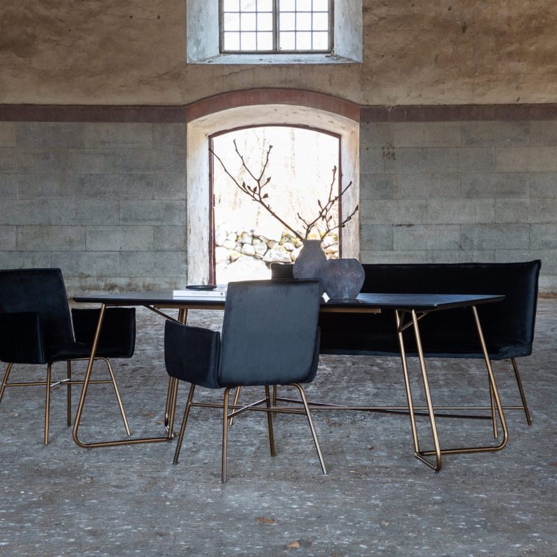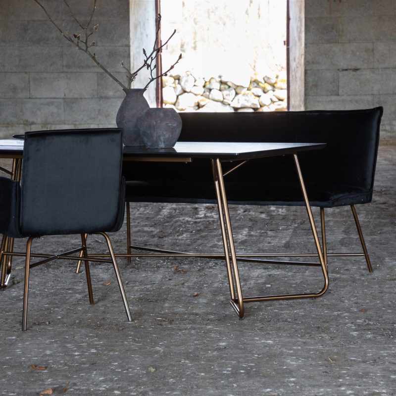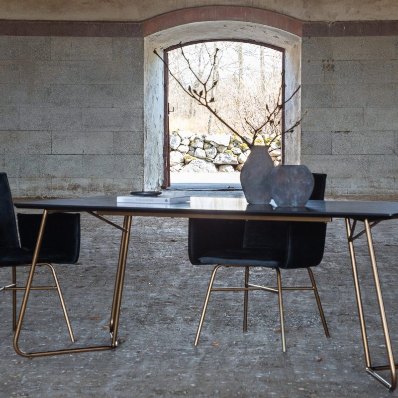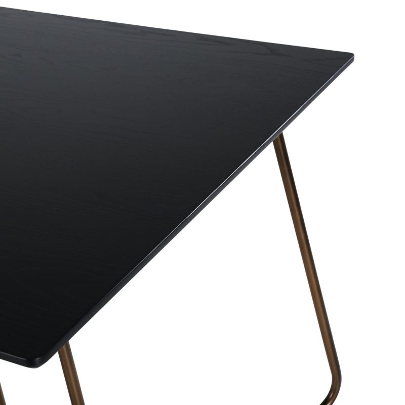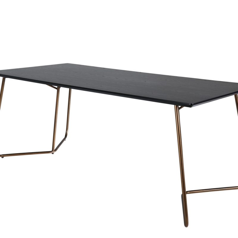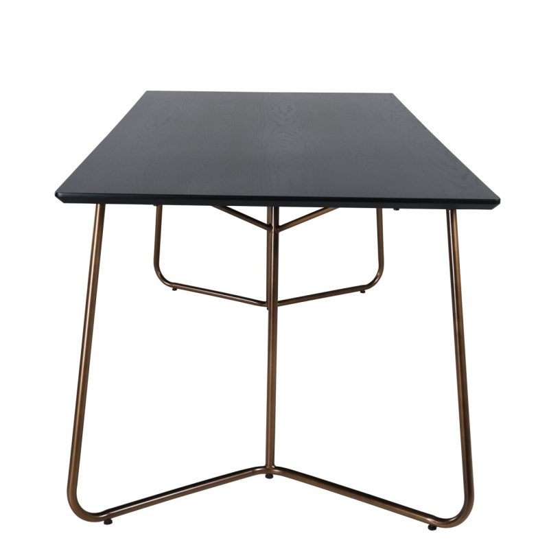 Tõsta oma söögitoa ilmet Petra söögilauaga, millel on kriimustatud vask ja must spoon. See stiilne laud on varustatud kolmnurksete vasest jalgadega ja elegantse ristkülikukujulise MDF lauaplaadiga. Skandinaavia disainist inspireeritud Petra söögilaud kiirgab luksust ja elegantsi oma kitsa profiili ja elegantse välimusega. Ühenda see oma lemmik söögitoolidega, et nautida stiilseid eineid!