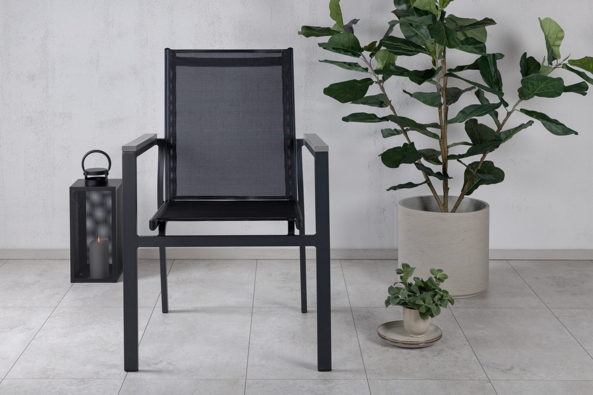 Tutvustame Parma tooli 2-pakki, klassikalise ja tööstusliku disaini segu otsete Põhjamaa vormidega. Luksuslik must värv ning vastupidav alumiiniumist ja tekstiilist materjal teevad sellest pikaajalise lisanduse teie ruumi. Hallid Aintwood käetoed lisavad maitsekust ning selle virnastatav disain tagab lihtsa ladustamise.