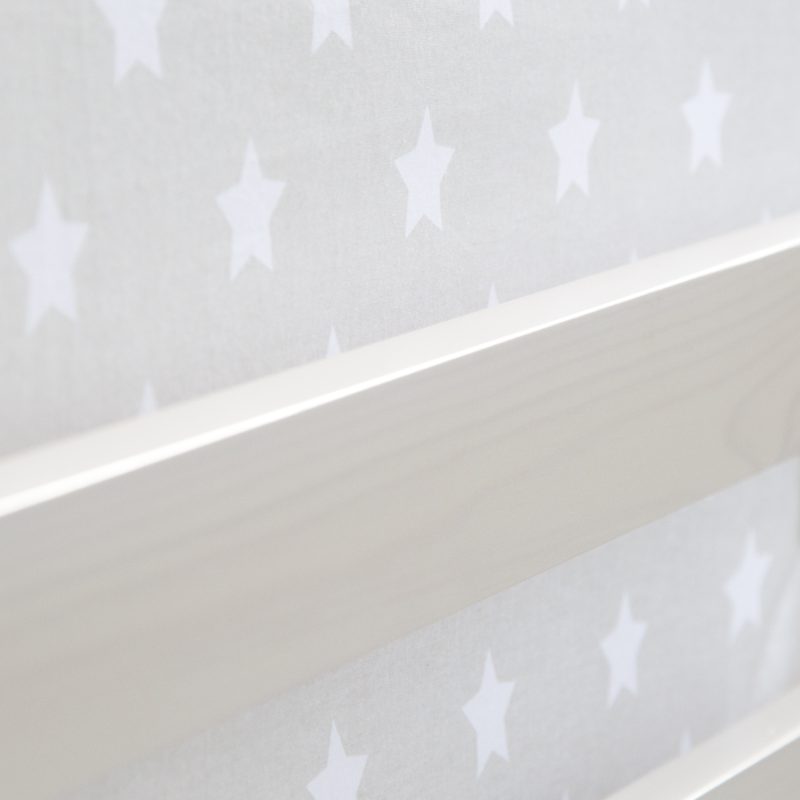 Kaasasolev halli tähtedega kardin loob unistamiseks ja mängimiseks maagilise atmosfääri. Kaasaegne ja ajatu disain koos lamellvoodiga optimaalse madratsi toetuse tagamiseks muudab selle voodi nii funktsionaalseks kui ka stiilseks.