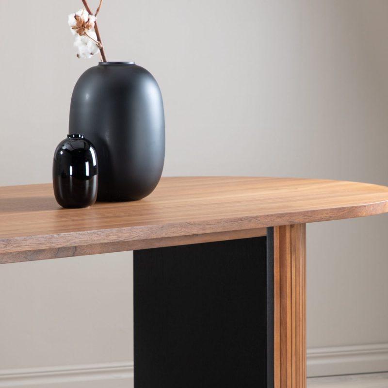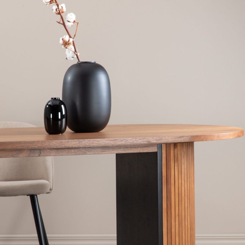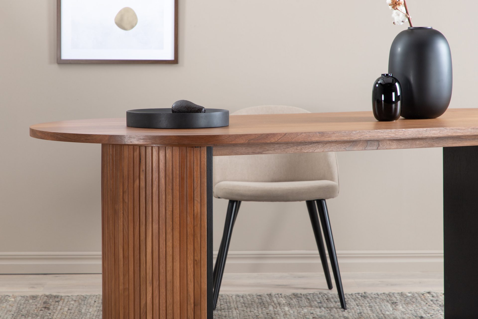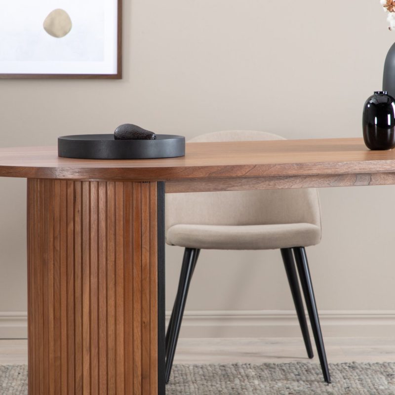 Tutvustame Bianca ovaalset söögilauda pähklipuust / pähklipuu spooniga! See moodne ja stiilne söögilaud on trendika pähklipuu värvi, vastupidava MDF lauaplaadiga ja tugeva soonitud raamiga. Tõstke oma eluruumi esile selle silmapaistva tükiga, mis on ideaalne paljude nauditavate söögikordade korraldamiseks.