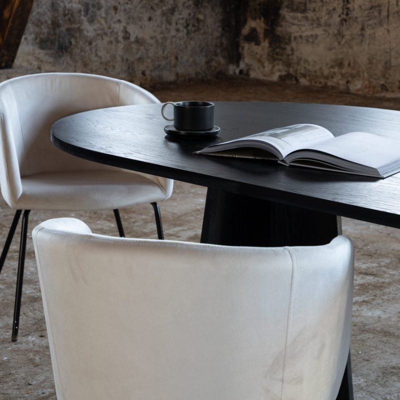 Tutvustame Bootcut Ovaalset Söögilauda – silmapaistev lisand teie kodukaunistusele. See ainulaadne laud on varustatud ovaalse musta MDF-plaadiga, millel on spoonkatted, mida toetab eristuv raam, millel on koonusekujulised jalad. Õhukese lauaplaadi minimalistlik disain täiendab suurepäraselt robustset raami. Ühendage see oma lemmik söögitoolidega, et luua ajatu komplekt, mis tõstab teie söögikogemuse uuele tasemele.