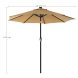 Täiustage oma õueelamust päikesevarjuga, millel on LED päikesetuled. See aiapäikesevari läbimõõduga 270 cm tagab päeval varju koos suurepärase UV-kaitsega kuni UPF 50+. Valmistatud 180 g/m² polüestrist, pakub see päikese all rahulikku puhkepaika. Õhtu saabudes looge romantiline õhkkond, lülitades sisse päikesepaneeliga toiteallika LED-tuled. Ideaalne õhtusöökideks või keskööüllatusteks. Päikesevari on stiilses taupe värvitoonis, valmistatud metallist koos polüestrist kangaga.