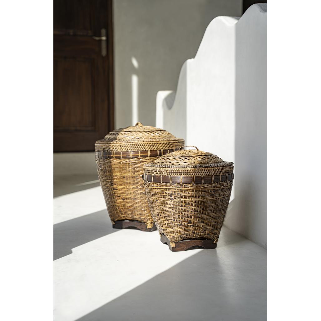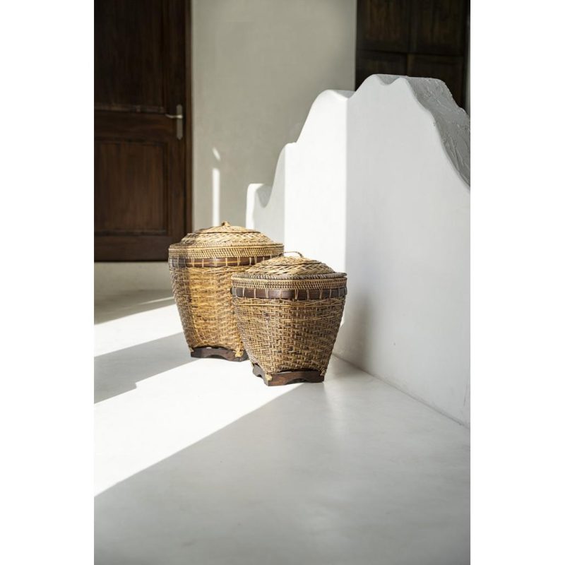 Hoolikalt käsitsi valmistatud rotangist, need korvid pakuvad klassikalist elegantsi. Saadaval kahes suuruses, et rahuldada teie hoiustamisvajadusi, toovad need teie kodu sisekujundusse nii stiili kui ka funktsionaalsust. Sügavad pruunid aktsendid ja detailirohked mustrid teevad sellest vapustava disainielemendi, mida saate tegelikult kasutada!