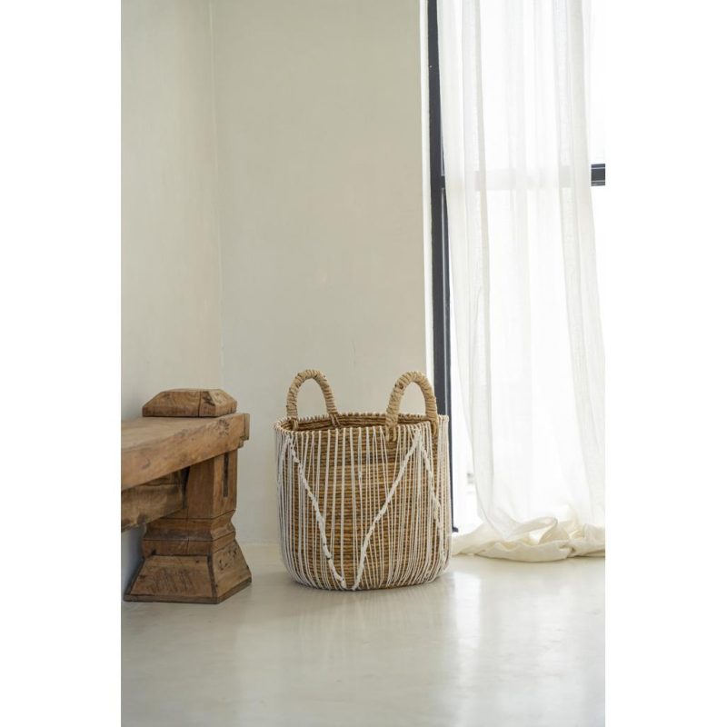 Korvi on kaunistatud keeruka mustriga valgest puuvillast. Ideaalne ajakirjade, mänguasjade või isegi kauni potitaime jaoks. Parim osa: saadaval on kolm suurust!