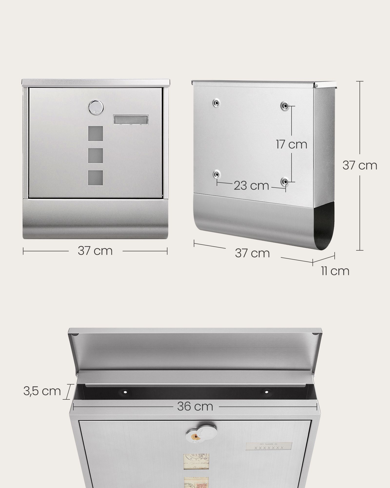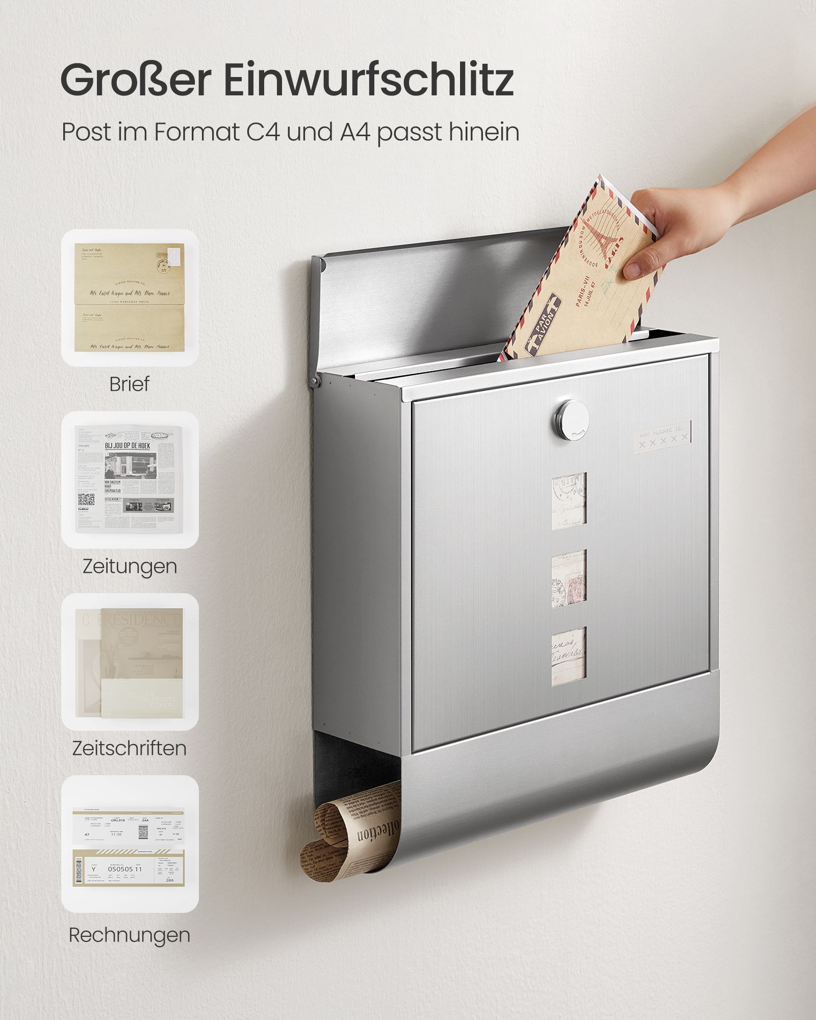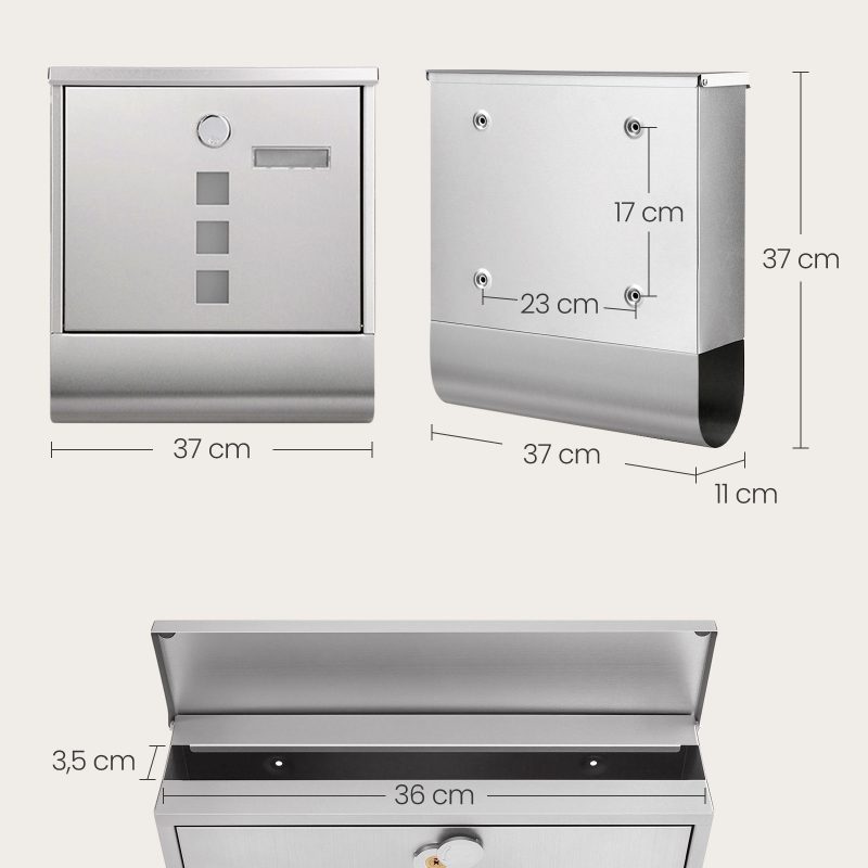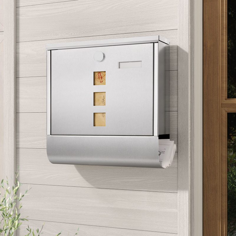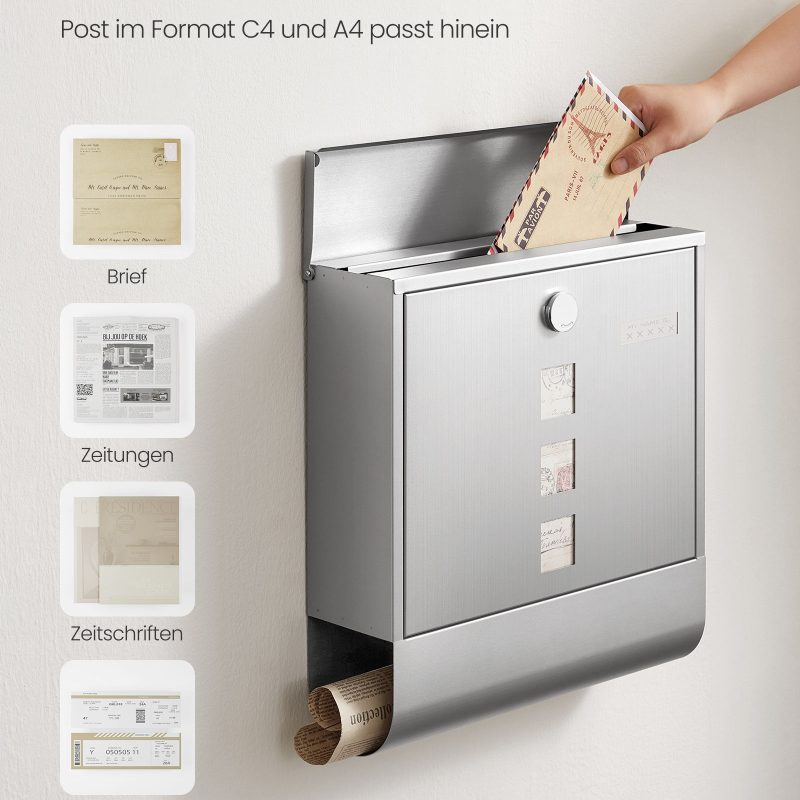 Seinakinnitusega postkast vasklukustuse silindriga! Postkastil on pöörlev kaas, ajalehehoidja, läbipaistev aken ja nimekaardi hoidik. Valmistatud tsingitud terasest vasklukustuse silindriga, tagab see turvalisuse ja stiili. Lihtne kokku panna, postkast on elegantse antratsiit värvi.
