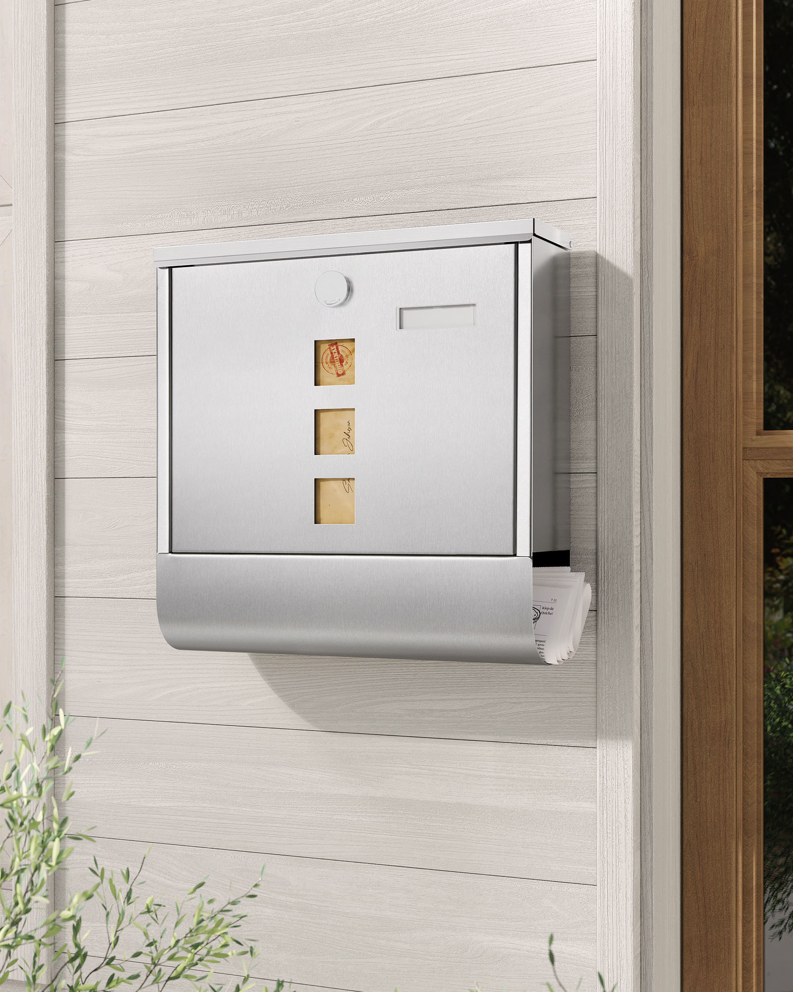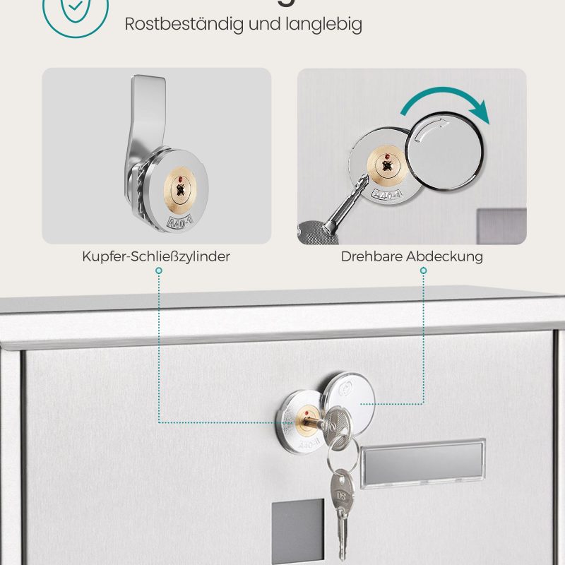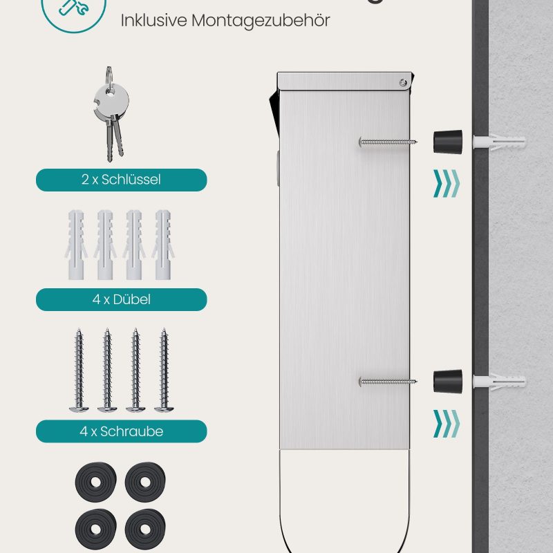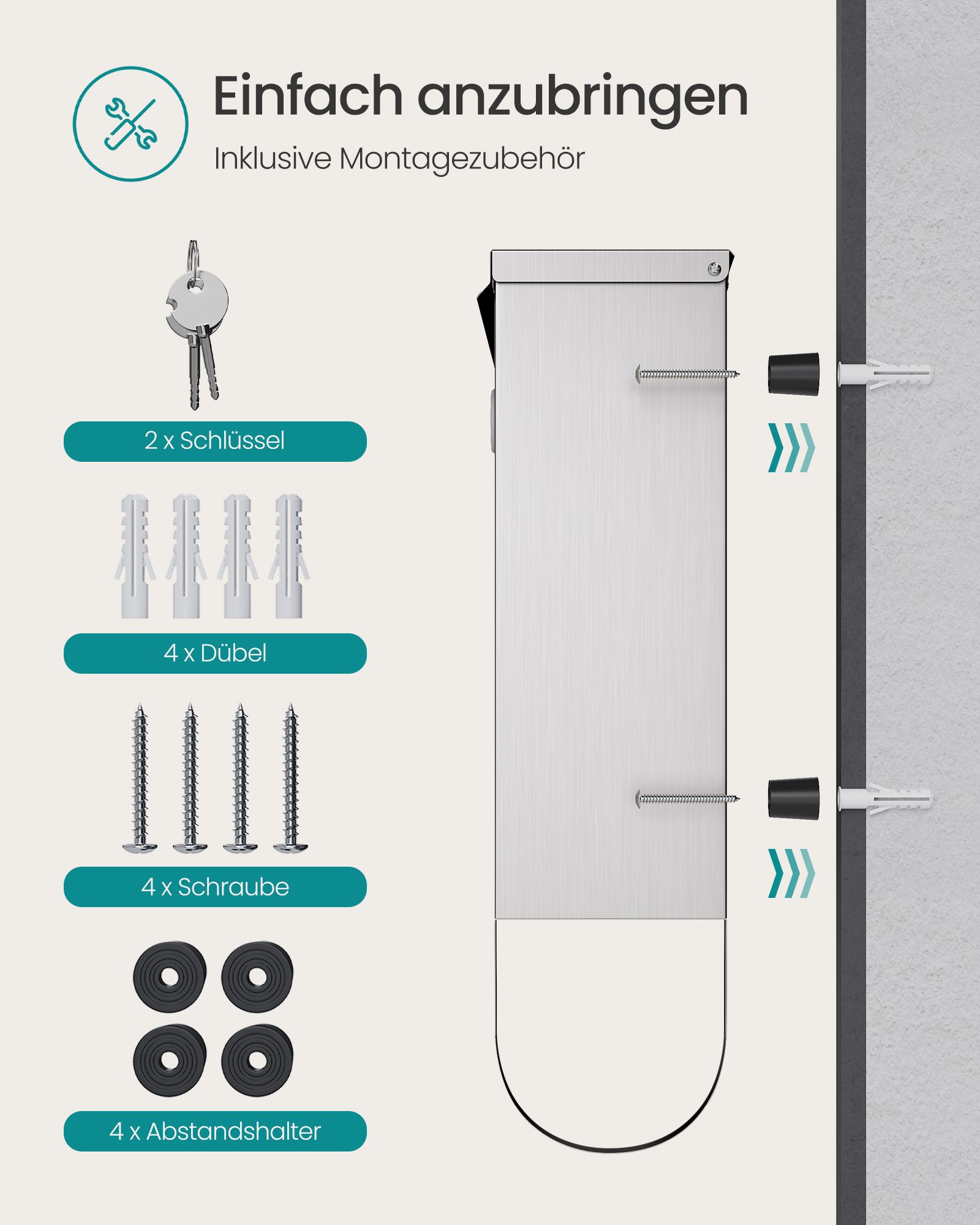 Seinakinnitusega postkast vasklukustuse silindriga! Postkastil on pöörlev kaas, ajalehehoidja, läbipaistev aken ja nimekaardi hoidik. Valmistatud tsingitud terasest vasklukustuse silindriga, tagab see turvalisuse ja stiili. Lihtne kokku panna, postkast on elegantse antratsiit värvi.