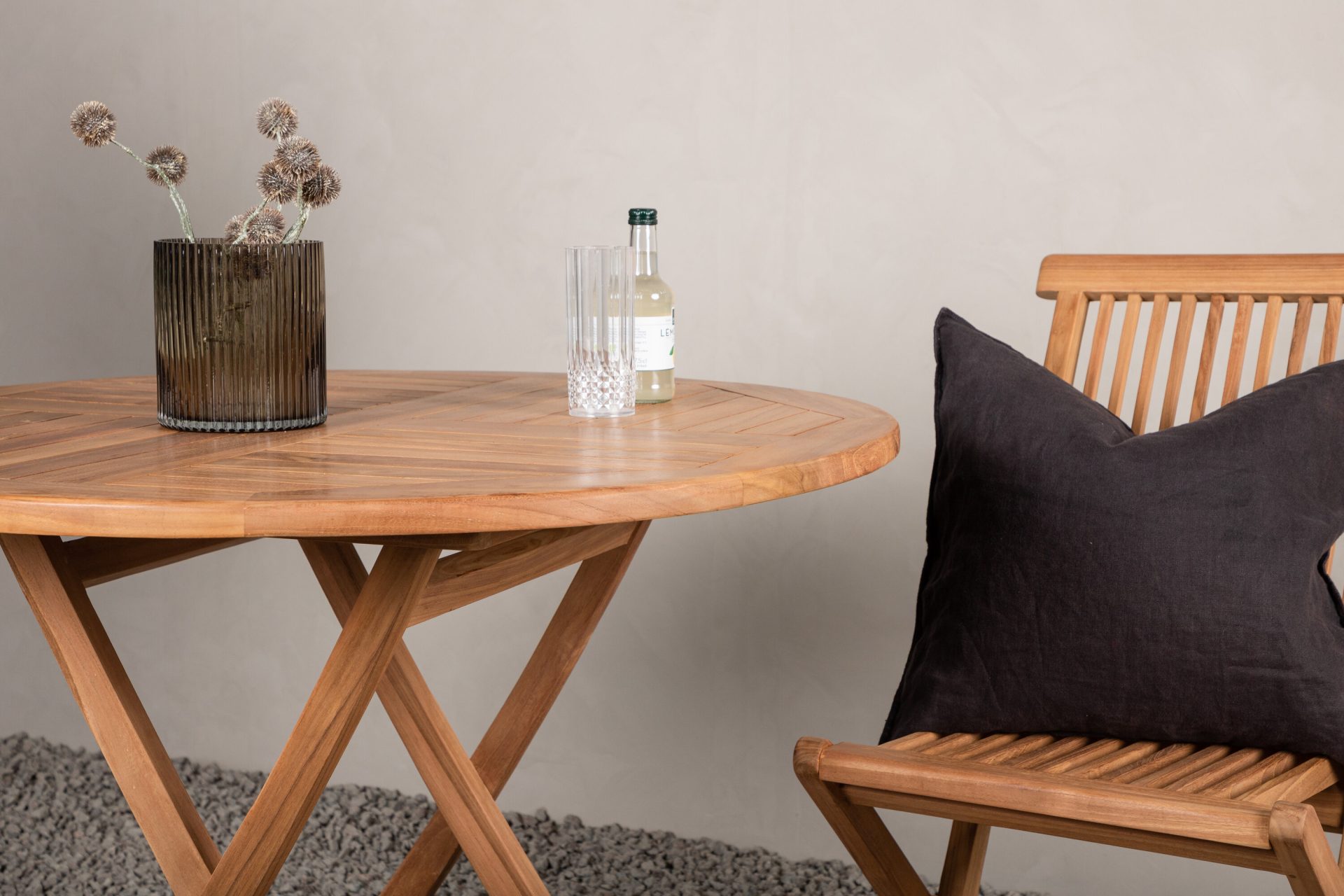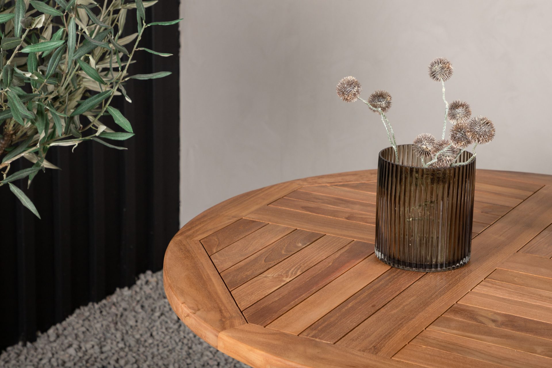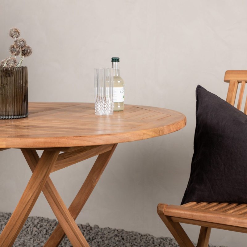 Rikasta oma välistingimustes söömise kogemust Kenya ümmarguse söögilauaga. Dekoratiivsest tiigipuust valmistatud võluv laud diameetriga 100cm on ideaalne suviste kohvitundide nautimiseks. See sobib nii aeda kui rõdule ja seda saab kombineerida sobivate söögitoolidega, luues tervikliku ilme, mis kutsub kogu pere kokku tulema.